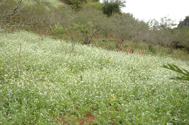 Hoa cải bắt đầu vào mùa nở rộ, cả cánh đồng toàn hoa cải trắng điểm khuyết với những chỏm đá làm màu trắng xanh của hoa xen giữa đá vô tình tạo nên bức tranh đồng hoa cải tuyệt đẹp.