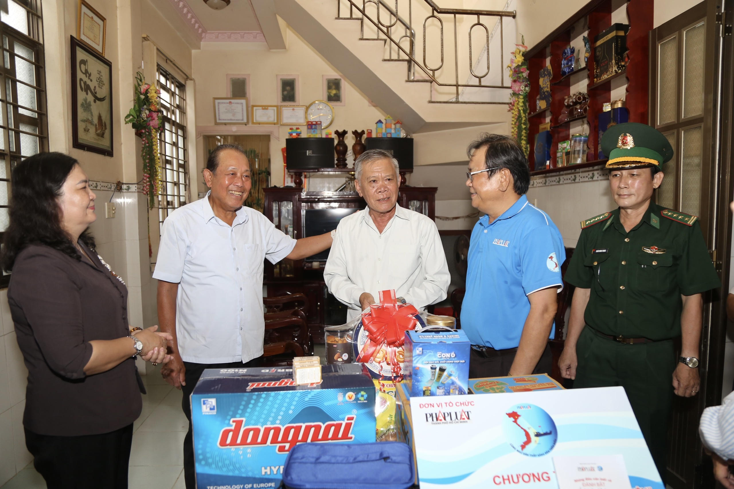 Ông Trương Hòa Bình - Nguyên Ủy viên Bộ Chính trị, Nguyên Phó Thủ tướng Thường trực Chính phủ, trao quà cho ngư dân tại tỉnh Bến Tre. |