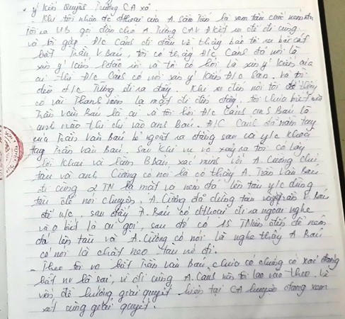 “Theo tôi việc bắt Trần Văn Báu chưa có chứng cứ xác đáng bắt là sai, vì đi cùng anh Cảnh nên tôi lao vào theo. Về vấn đề hướng giải quyết hiện tại, công an huyện đang xem xét cùng giải quyết”, ông Quỳnh cho biết trong biên bản.
