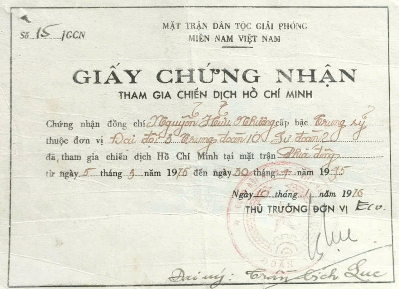Trong những trận đánh “Quyết tử để Tổ quốc quyết sinh”, hàng trăm đồng đội của ông đã anh dũng hy sinh, nhiều người vĩnh viễn nằm lại nơi ấy. Đến tháng 10 năm 1980 ông xuất ngũ trở về địa phương, sau gần mười năm công tác tại Đoàn 10 Đặc công rừng Sác.
