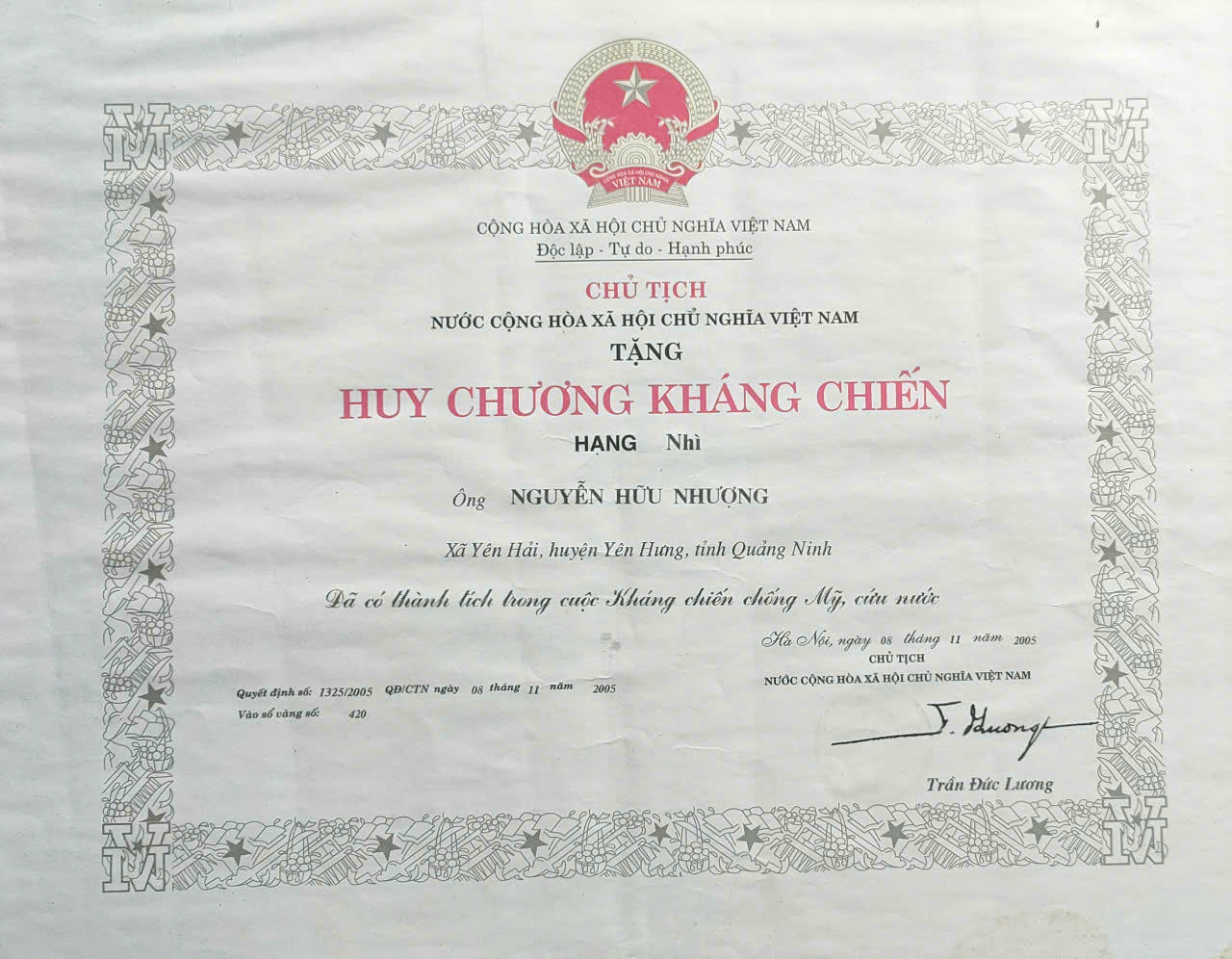 Huy Chương kháng chiến hạng Nhì của ông Nguyễn Hữu Nhượng. |