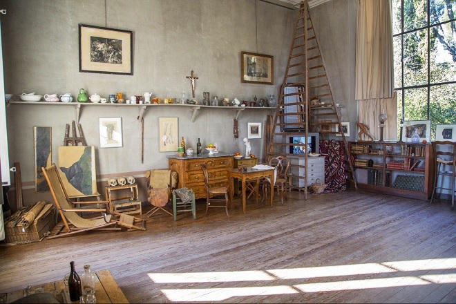 Ngôi nhà hai tầng, không lớn lắm, được xây khá đơn giản. Tầng trệt có một phòng ngủ và kho lưu tranh. Toàn bộ tầng 2 được dành làm xưởng vẽ với những khung cửa sổ lớn, lấy ánh sáng từ hướng nam, và được thiết kế thông minh nhờ hệ thống cửa gấp để tránh ánh nắng gay gắt trực tiếp.