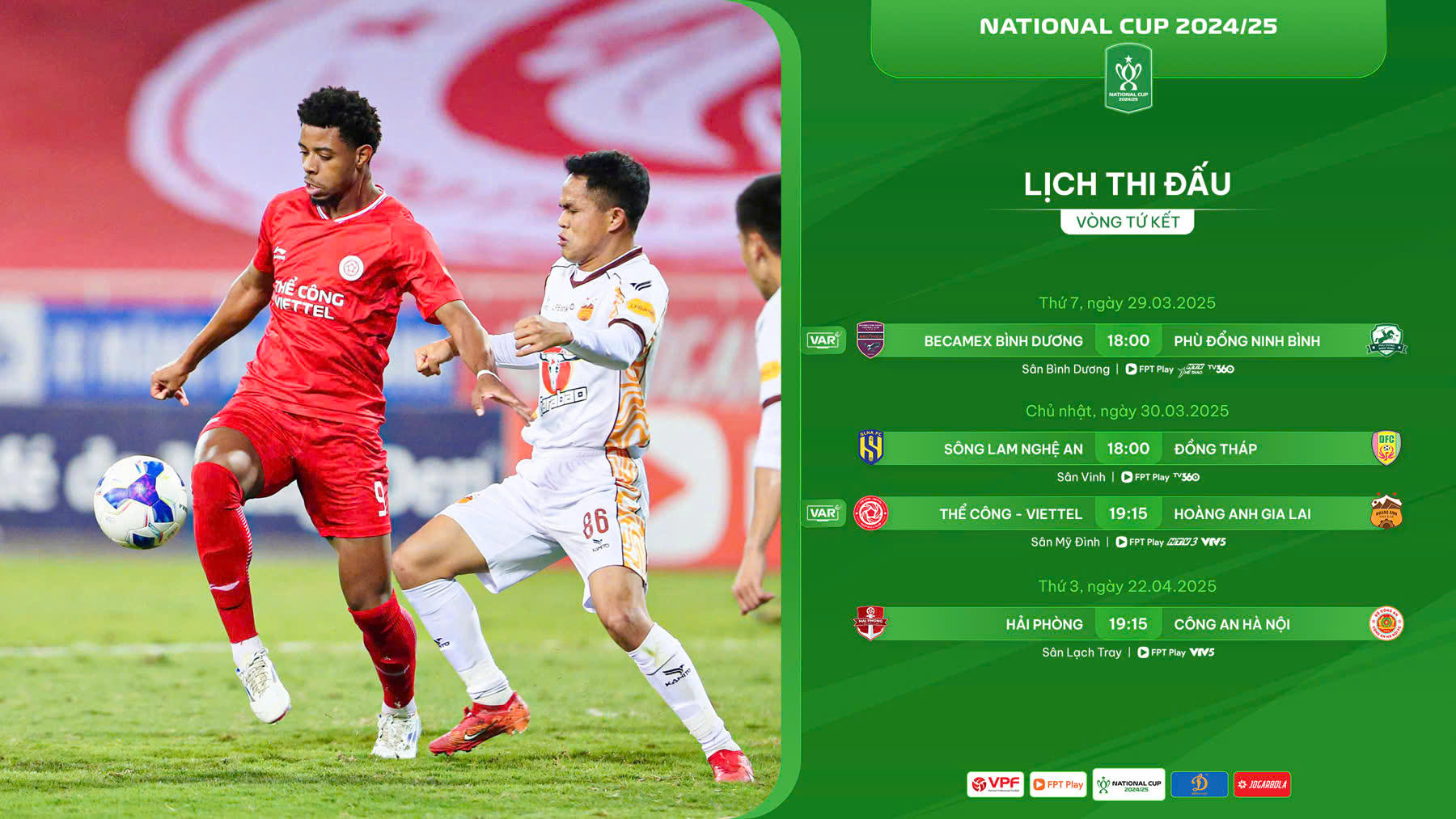 Trận tứ kết muộn nhất sẽ diễn ra vào ngày 22/4 tại sân Lạch Tray giữa Hải Phòng và Công an Hà Nội.