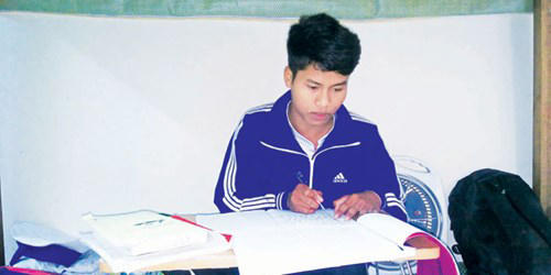 Từ lúc nhập học, Vinh luôn tìm tòi và học hỏi các bạn, các anh chị đi trước những môn học khó “Em luyện tiếng Việt chưa được tốt nên hồi mới vào đây, em ngại nhất là môn tiếng Anh. Nhưng không sao anh ơi, bựa ni em không sợ hắn nữa rồi”. Vinh nhoẻn miệng cười khi kể về những khó khăn ngày đầu. Được biết, em đang làm thủ tục để thi Toeic, đề thi tiếng Anh dành cho sinh viên năm cuối.