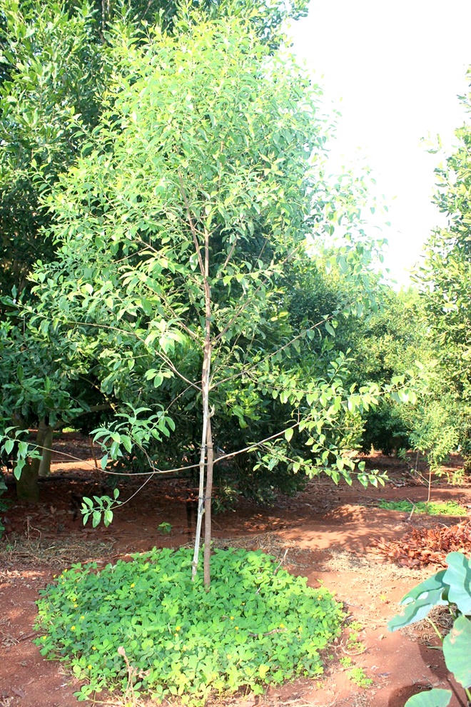 Những vườn macca đang trồng ở Điện Biên có mật độ cây cách cây 6m, trong khi cây đàn hương lên thẳng. Ông Chiến nghĩ nếu trồng đàn hương vào giữa cũng không ảnh hưởng đến tán quang hợp của macca. Nếu hai cây quý này không “đánh nhau”, đặt cạnh nhau giúp tối ưu về diện tích đất, tại sao không làm?