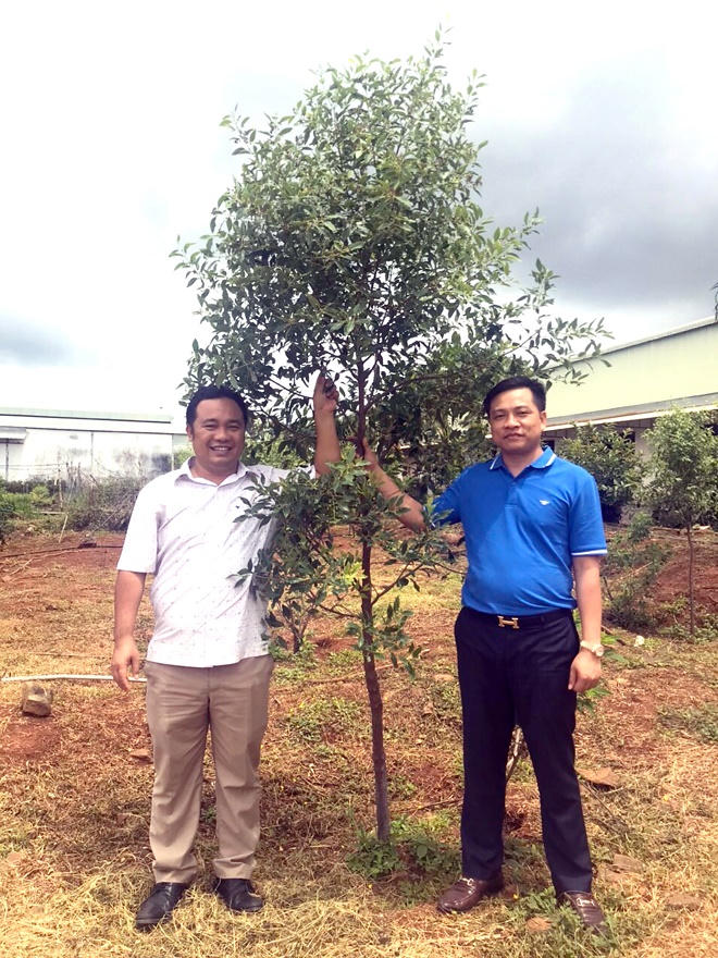 Hiện 6 ngàn cây trồng đợt đầu đã hơn 1 tuổi, độ cao trên 2m, đường kính gốc khoảng 5cm. Công ty bắt đầu có thu nhập “lấy ngắn nuôi dài” từ tỉa cành, thu búp để làm trà, thu quả ép tinh dầu.