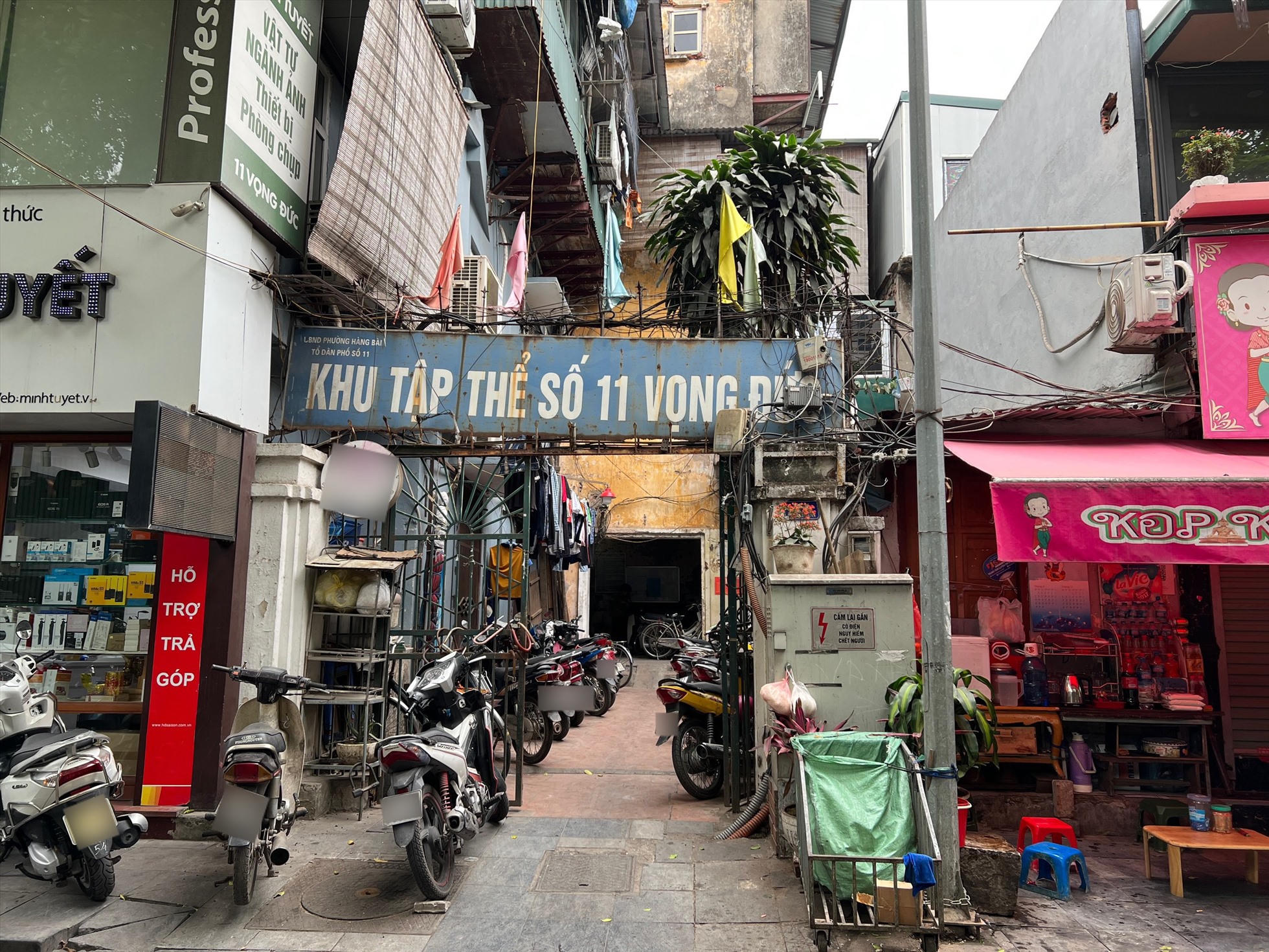 Cũng bên trong khu tập thể, hệ thống đường ống dẫn nước và dây điện tại đây chằng chịt như mạng nhện. Cư dân tập thể số 11 Vọng Đức hay đùa với nhau: “Nhất chợ, nhì ga, thứ ba Vọng Đức” để ví cuộc sống ở đây dù có nhà nhưng chẳng khác gì người sống vất vưởng ở ngoài đường, ngoài chợ.