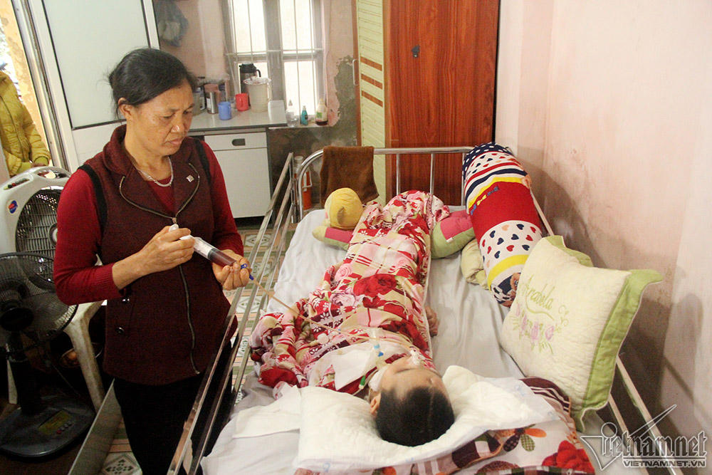 Căn phòng 10m2 nhà ông bà Nguyễn Văn Hải, 2 năm nay đã được dành riêng cho cô con dâu ốm yếu, tay chân co quắp nằm bất động trên giường với ống hút, dây nhựa và bông gạc. Sau vụ nổ kinh hoàng, chị Lệ đã được điều trị ở nhiều BV lớn, nhỏ tại Hà Nội, cầu cứu thầy thuốc tứ phương nhưng cuối cùng, gia đình phải chấp nhận đưa chị về nhà chăm sóc với hy vọng ngày nào đó tình trạng của chị sẽ khá hơn.