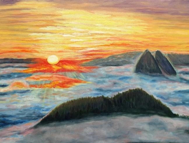 Tác phẩm Bình minh núi Maisan của hoạ sĩ Julia Oh (ảnh NVCC). |