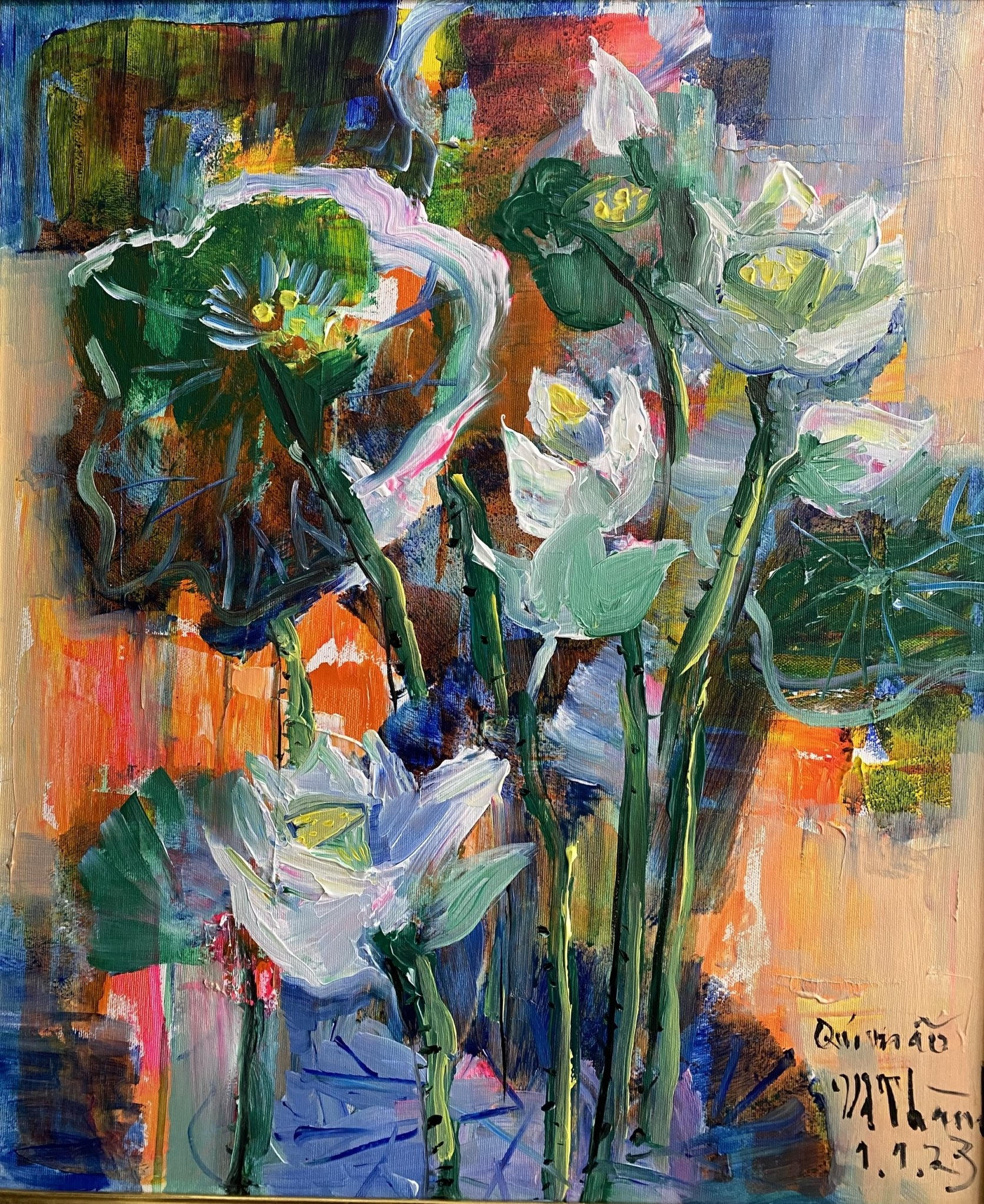 Tác phẩm Sen Quý Mão của hoạ sĩ Văn Dương Thành (ảnh NVCC). |