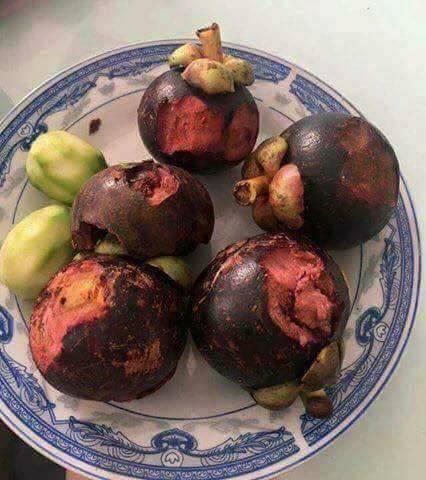 Facebooker Hậu Nguyễn đăng lại bức ảnh trái măng cụt được gặm nham nhở với lời bình: "Lần đầu tiên em được ăn đấy ạ! Chỉ vì anh bán hàng đẹp zai, bảo quả này ngon lắm, làm phát 3kg, về ko nuốt nổi, chát xít, lôi muối ô mai ra chấm cũng ko ăn thua. Chết không chừa cái tội zại zai”.