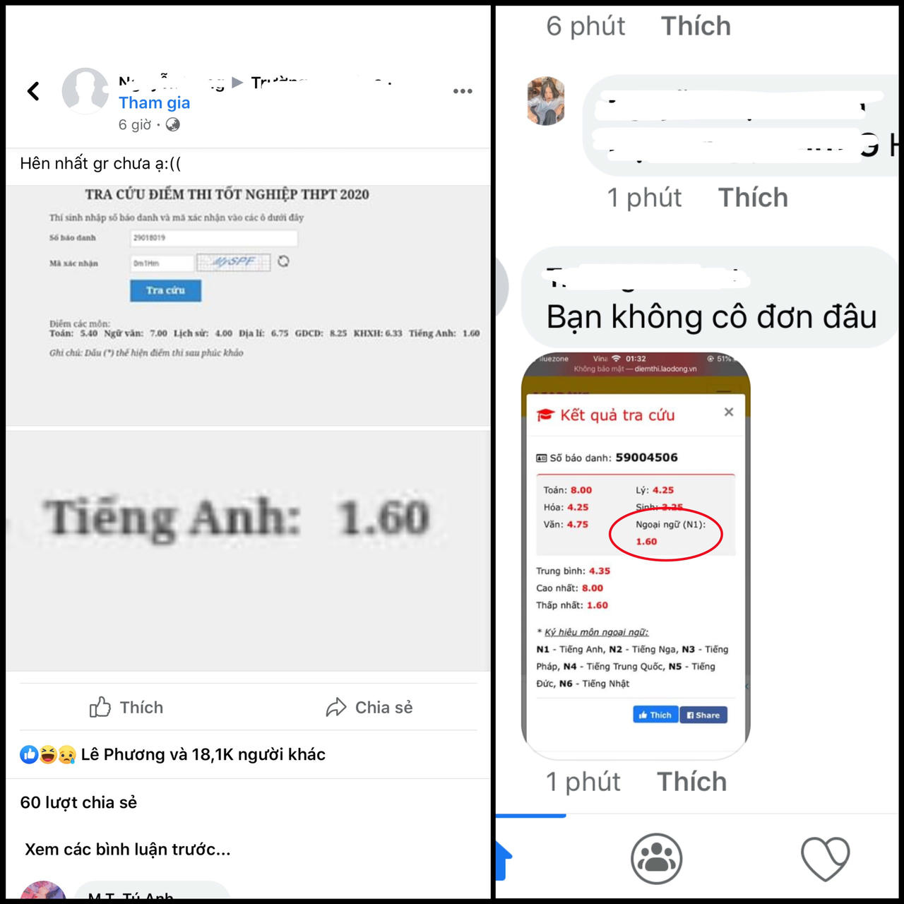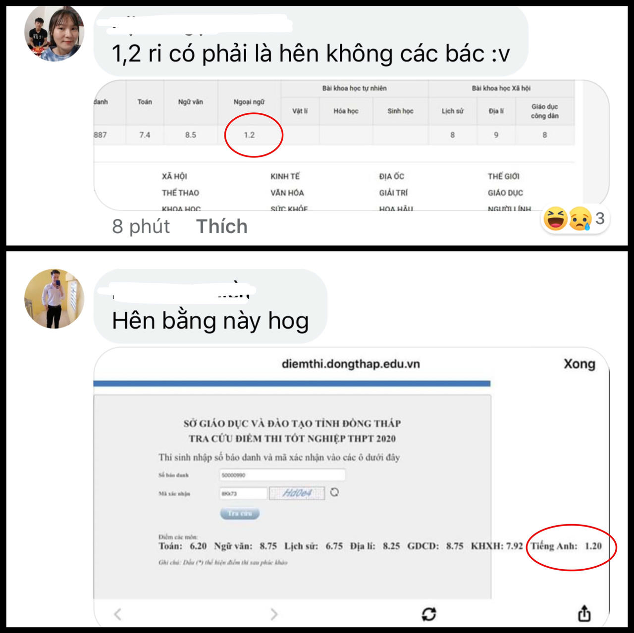 Bên cạnh các nữ sinh, nam sinh nhận "mưa" lời khen thì có những trường hợp “dở khóc dở cười” với điểm thi, nhát là môn Tiếng Anh. Đó là các trường hợp được đánh giá học lực khá trở lên nhưng lại có điểm thi môn Tiếng Anh xấp xỉ... 1.