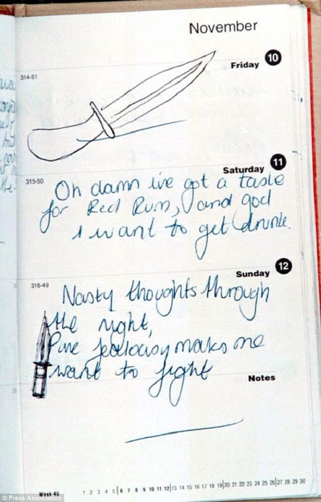 Trong cuốn nhật ký của Sharon Carr, cảnh sát đã phát hiện nhiều đoạn miêu tả gây sốc về cảm giác thỏa mãn sau khi sát hại nạn nhân tàn bạo, dù trước đó hai người không hề quen biết. “Tôi là một sát thủ. Đấy là nghề của tôi, và việc này đã diễn ra rất thuận lợi”.
