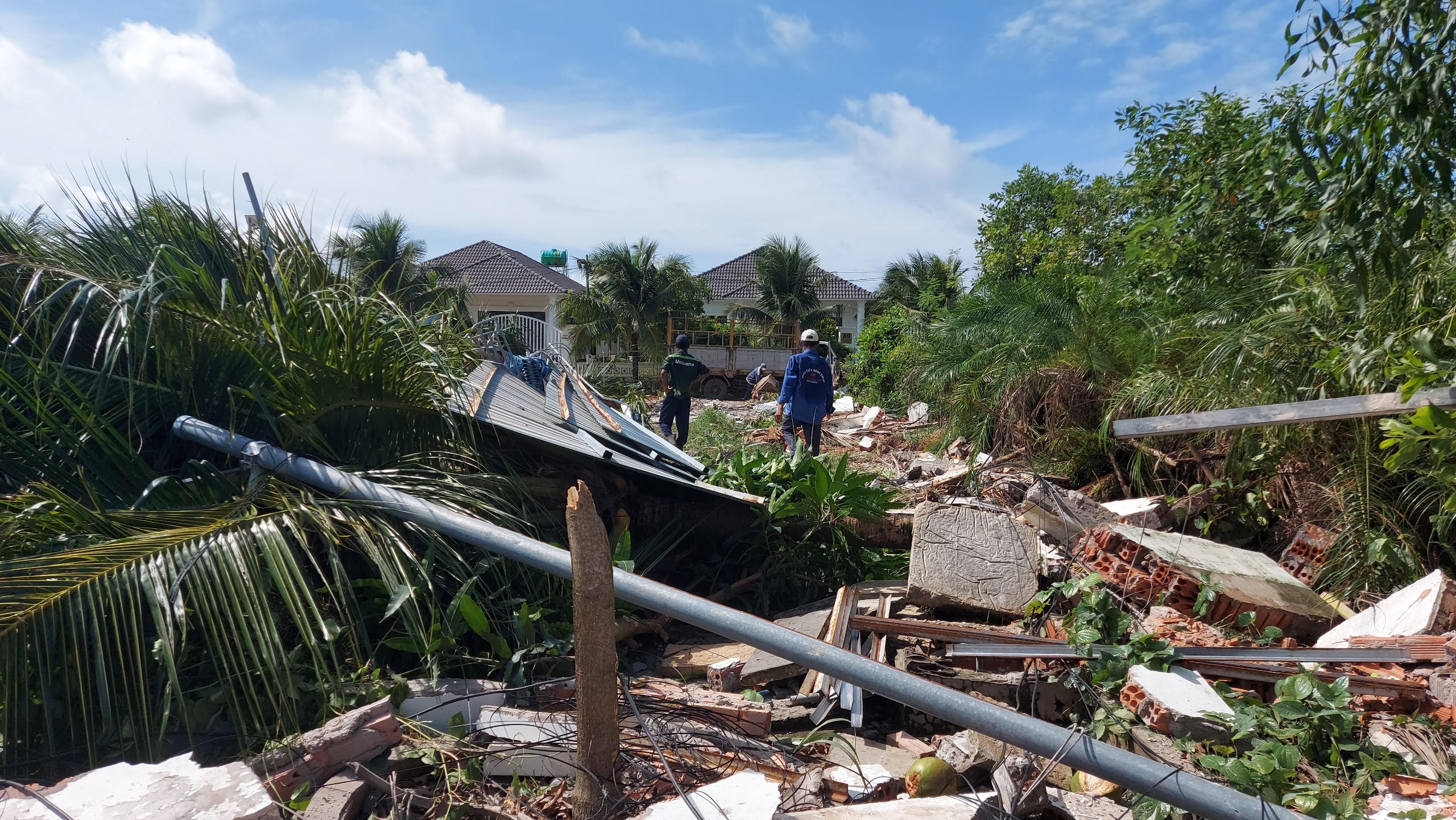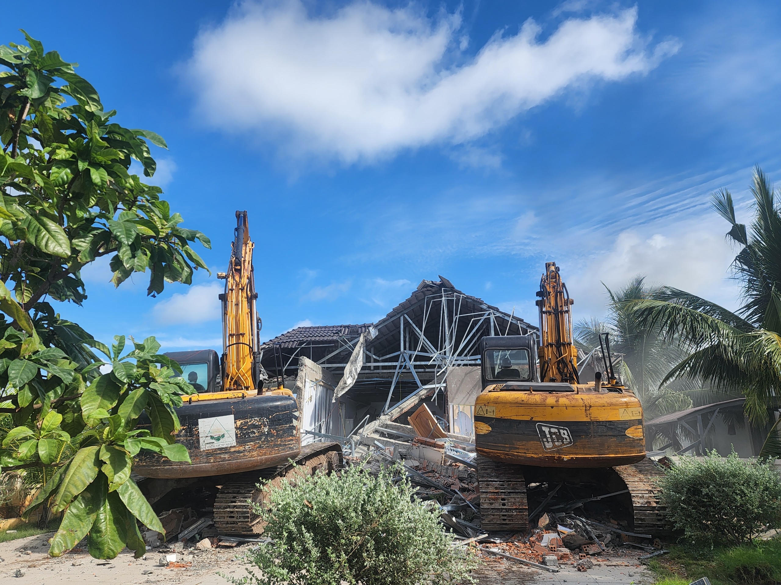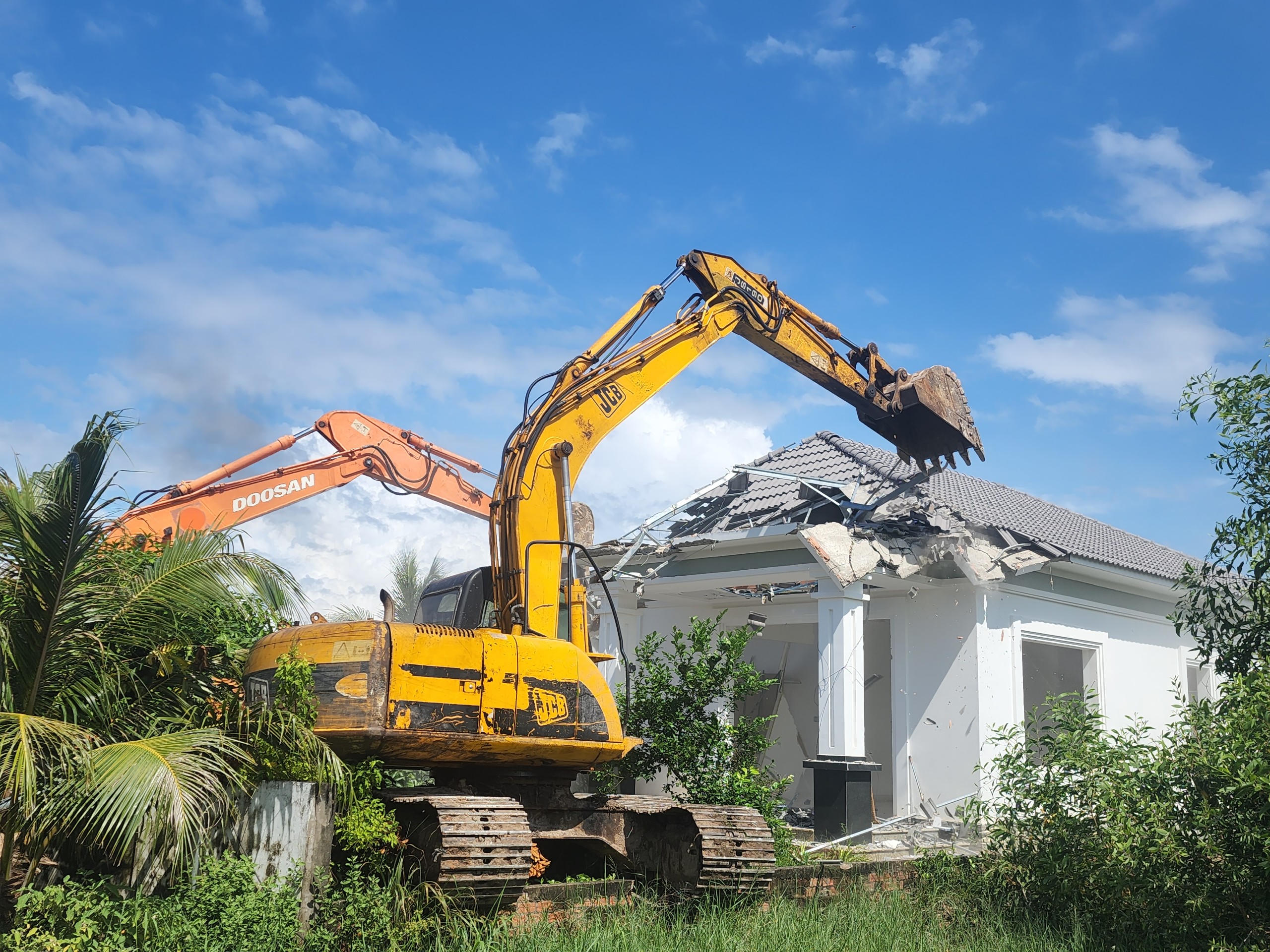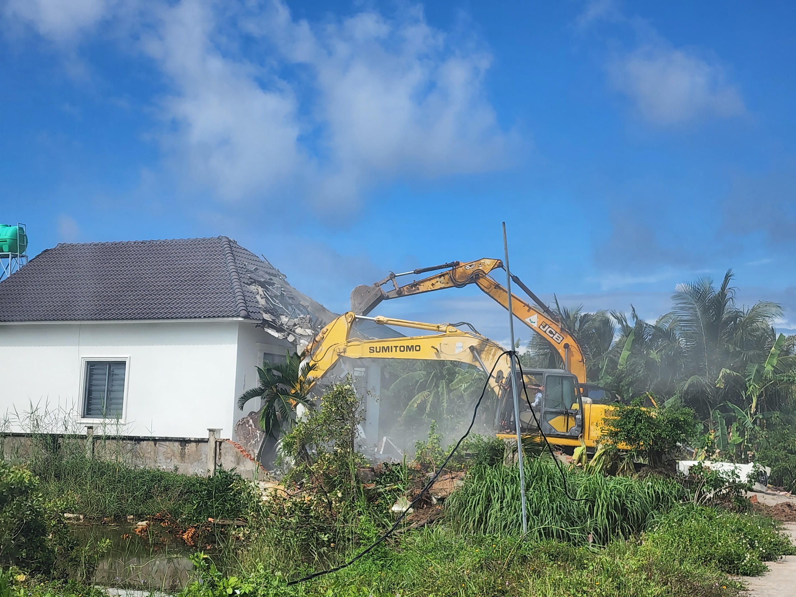 Lực lượng chức năng đang tiến hành tháo dỡ một biệt thự xây dựng không phép trong khu vực 79 căn biệt thự xây dựng trái phép ở TP Phú Quốc |