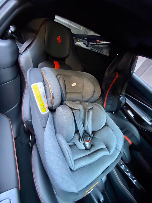 Hình ảnh chiếc siêu xe của Cường Đôla lắp ghế an toàn cho trẻ em.