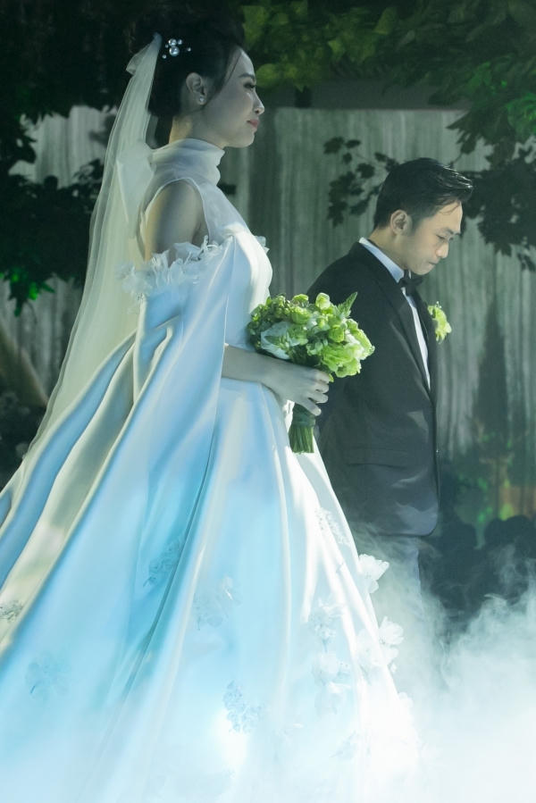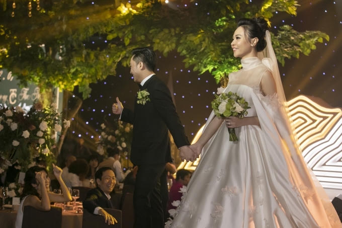 Người đẹp không giấu được niềm hạnh phúc trong ánh mắt. Cặp đôi quen nhau khoảng hai năm và đã tổ chức đám hỏi ở Lạng Sơn - quê nhà cô dâu vào tháng 1/2019. Đám cưới của họ tối 27/8 trở thành sự kiện nhận được nhiều quan tâm nhưng họ muốn có không gian riêng tư nên an ninh được thắt chặt.