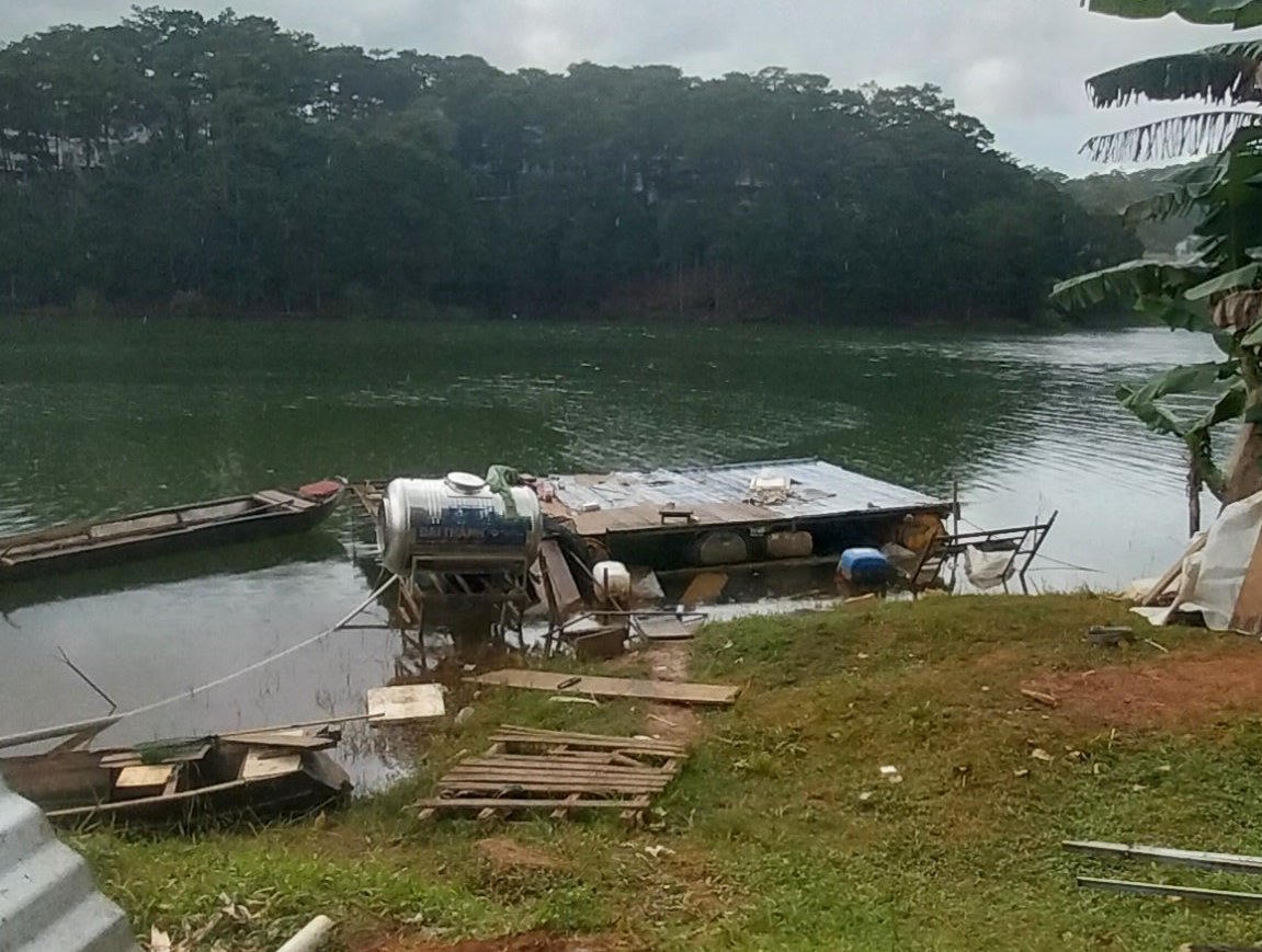 Tiến hành di dời, giải toả nhà nổi, vó bè trái phép trên mặt hồ Tuyền Lâm. |