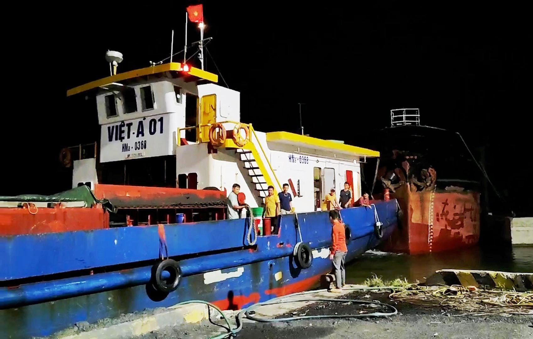 Tàu Việt Á 01 cứu hộ, đưa 11 thuyền viên tàu Nam Phát 01 vào cảng Kỳ Hà an toàn. |