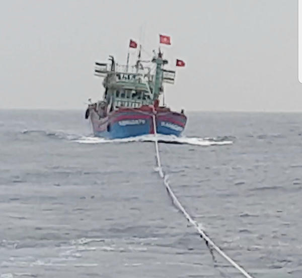 Trước đó, khoảng 12h ngày 27/3, tàu NA 90558 TS do ông Trần Văn Định (trú tại xã Quỳnh Long, huyện Quỳnh Lưu, tỉnh Nghệ An) làm thuyền trưởng, đang đánh bắt trên biển thì bị hỏng máy chính.