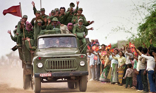 Quân tình nguyện Việt Nam thực hiện nghĩa vụ quốc tế ở Campuchia trước khi rút về nước năm 1989. Ảnh:Jeff Widener. |