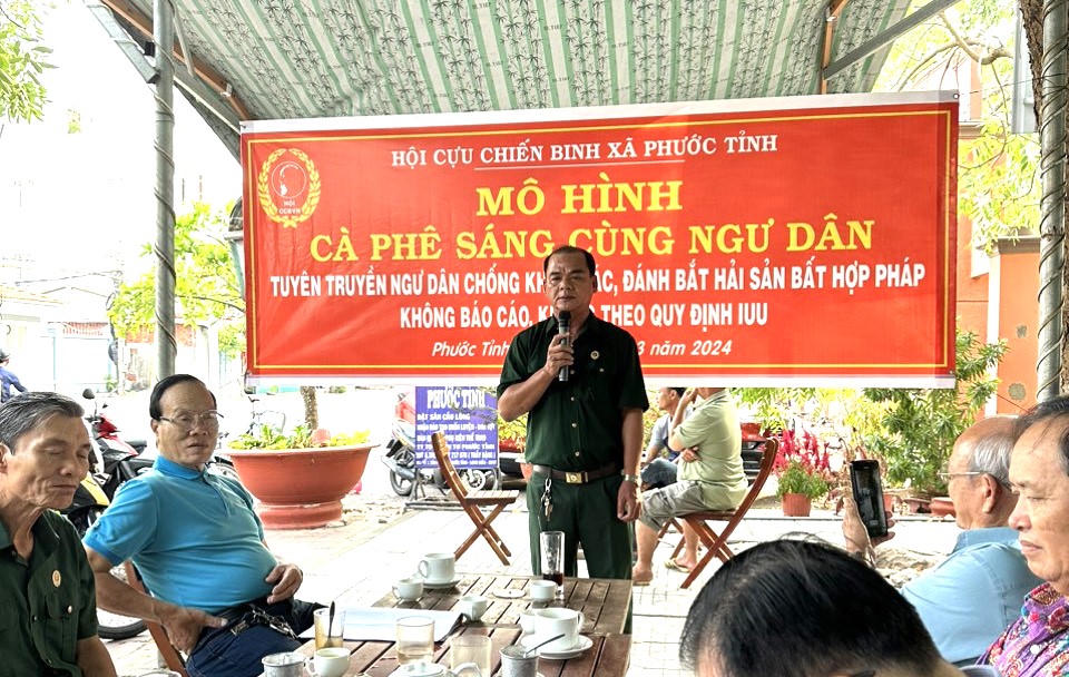 Ông Nguyễn Văn Cảnh - Chủ tịch Hội Cựu chiến binh xã Phước Tỉnh - cho biết, với mong muốn chung sức cùng cả hệ thống chính trị vào cuộc, hướng tới chấm dứt việc khai thác IUU, gỡ “thẻ vàng” của Uỷ ban châu Âu (EC), Hội Cựu chiến binh xã Phước Tỉnh đã ban hành kế hoạch phối hợp với các đơn vị tổ chức mô hình “Cà phê sáng cùng ngư dân”.