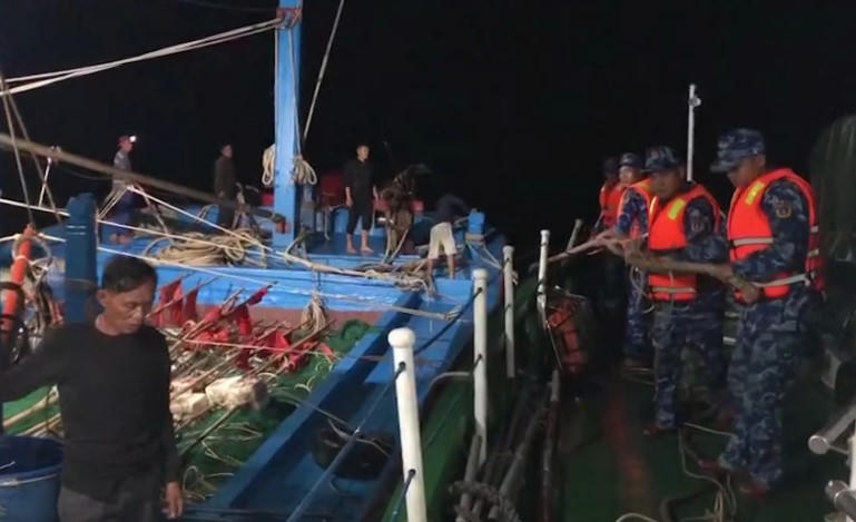 Đêm tối, sóng to, biển động mạnh nên việc tổ chức ứng cứu gặp rất nhiều khó khăn. Đến khoảng 3h hôm nay, 25/10, tàu Cảnh sát biển 3006 đã tiếp cận được hiện trường và sử dụng dây lai dắt, kéo tàu bị nạn về đất liền.