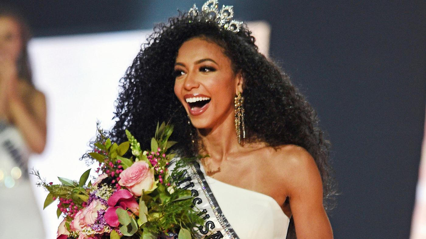 Cheslie Kryst trong giây phút đăng quang ngôi vị Hoa hậu Mỹ năm 2019. Ảnh: NPR