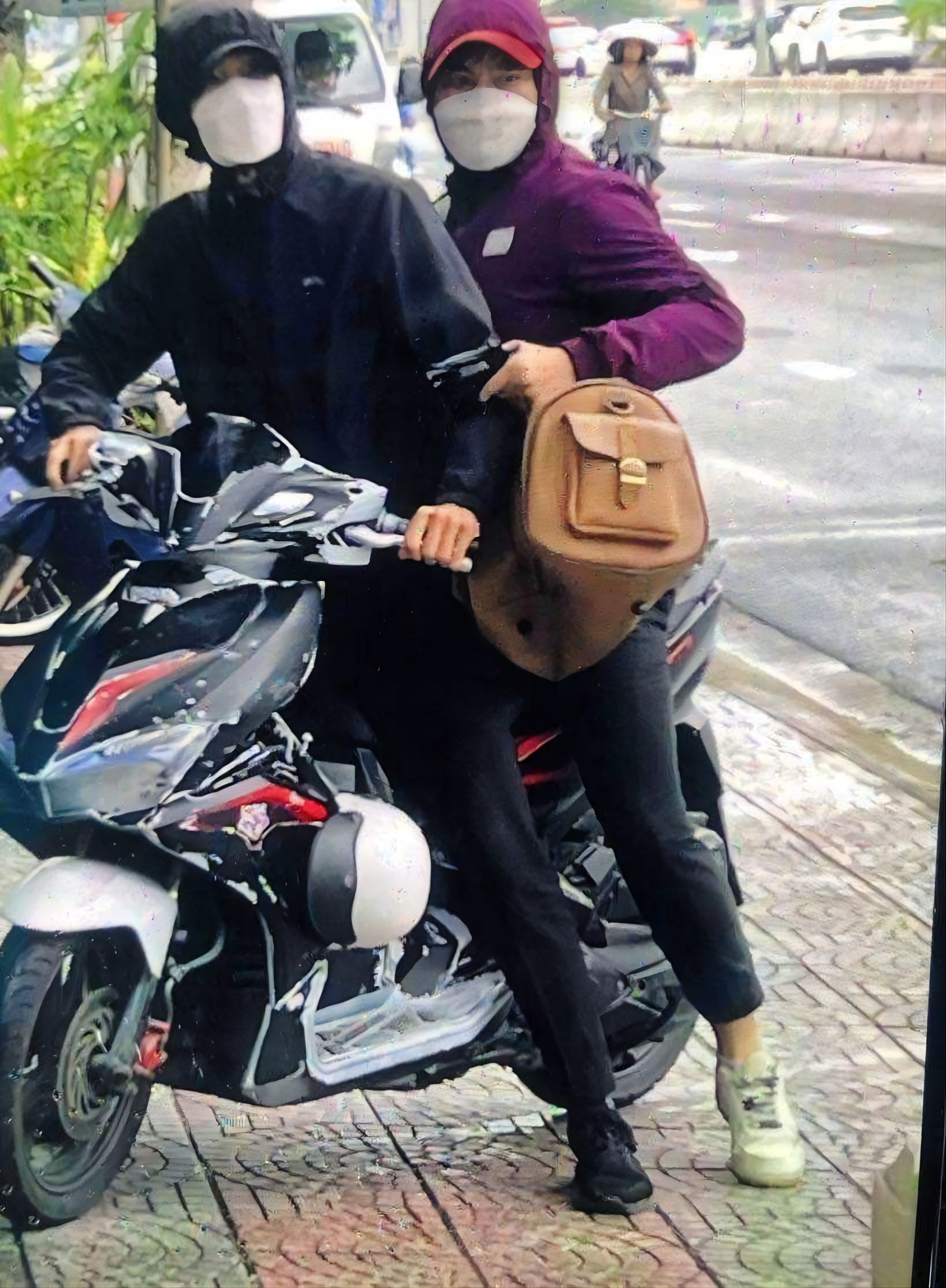 Hình ảnh 2 đối tượng lúc vừa thực hiện vụ cướp. |
