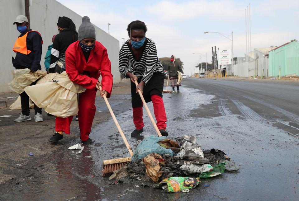 Người dân và tình nguyện viên Nam Phi dọn dẹp "chiến trường" sau bạo loạn (Ảnh: Reuters) |