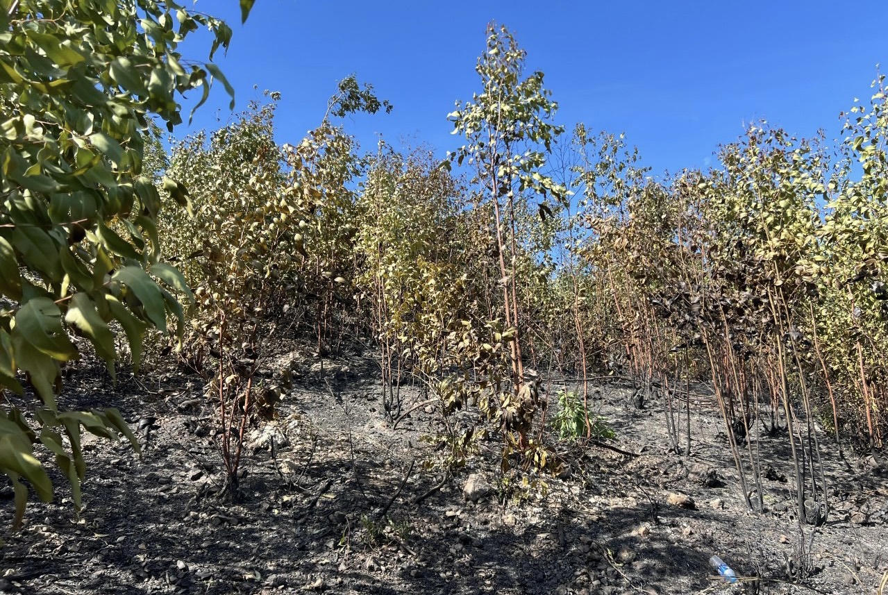 Hiện trường vụ cháy rừng bạch đàn tại xã Quảng Đông. |