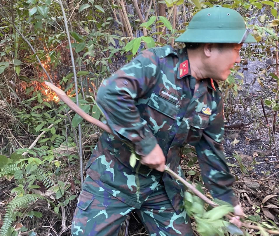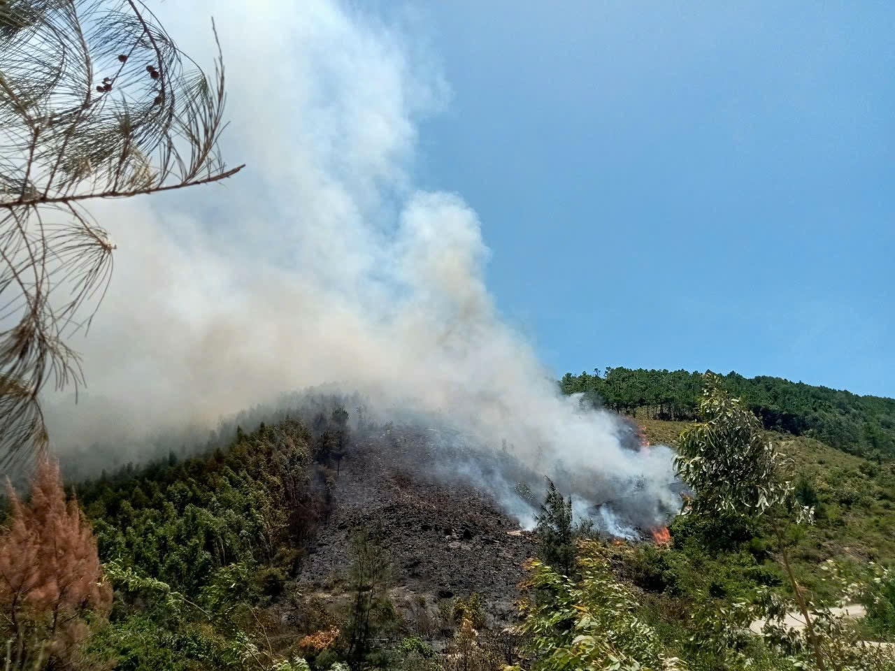 Tuy nhiên, khu vực xảy ra đám cháy ở vị trí cao, triền dốc, địa hình phức tạp, thực bì dày, kết hợp gió thổi mạnh, thời tiết nắng nóng… khiến công tác tiếp cận hiện trường để dập lửa gặp nhiều khó khăn.