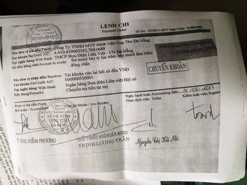 Đáng nói, sau khi chuyển trả hơn 37 tỉ của lãnh đạo BV Ung thư, bà Nguyễn Thị Vân Lan, Phó chủ tịch Hội Bảo trợ đã có công văn gửi Chủ tịch HĐQT, Tổng giám đốc NH Liên Việt, xin ngân hàng này tiếp tục tài trợ cho BV Ung bướu để mua hệ thống chụp mạch máu hóa số như đã cam kết trước đây, nhưng không được chấp nhận.