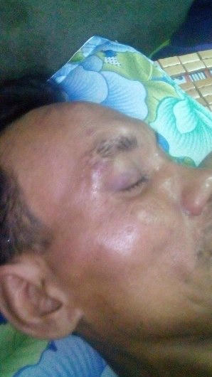 Sau đó anh Dũng bị mấy đồng chí công an tại đây chặn lại, lấy còng số 8 khóa vào trụ sắt ngoài hiên rồi đánh anh Dũng sưng mặt, sưng mắt, bầm tím cả người.