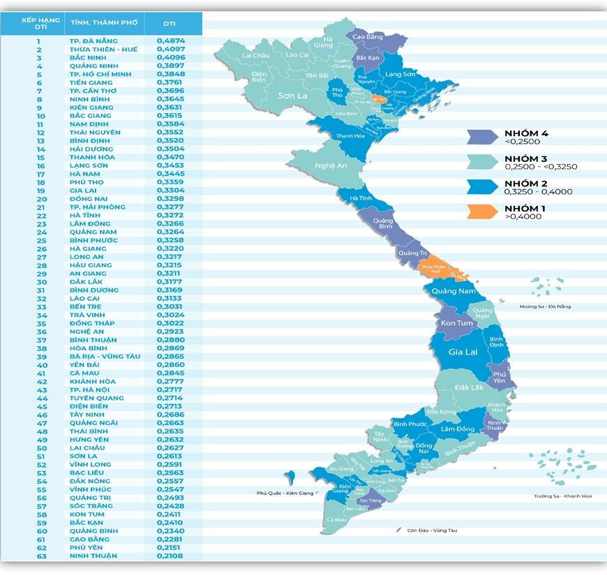 Xếp hạng DTI 2020 của các tỉnh, thành phố trên cả nước. |