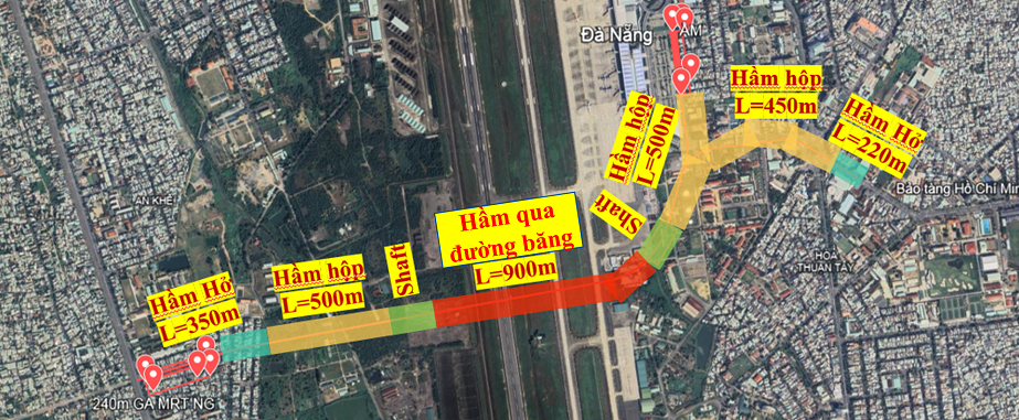 Sở Xây dựng Đà Nẵng kiến nghị đối với tuyến hầm qua sân bay, không nên kết hợp bố trí tuyến MRT và đường bộ đi chung. Bởi tiêu chuẩn kỹ thuật của MRT và đường bộ khác nhau. Đặc điểm của bình diện, trắc dọc tuyến MRT và đường bộ tại vị trí hầm qua sân bay quá khác nhau nên khó khăn trong việc xử lý kết cấu tại vị trí chuyển hướng giữa MRT và đường bộ.