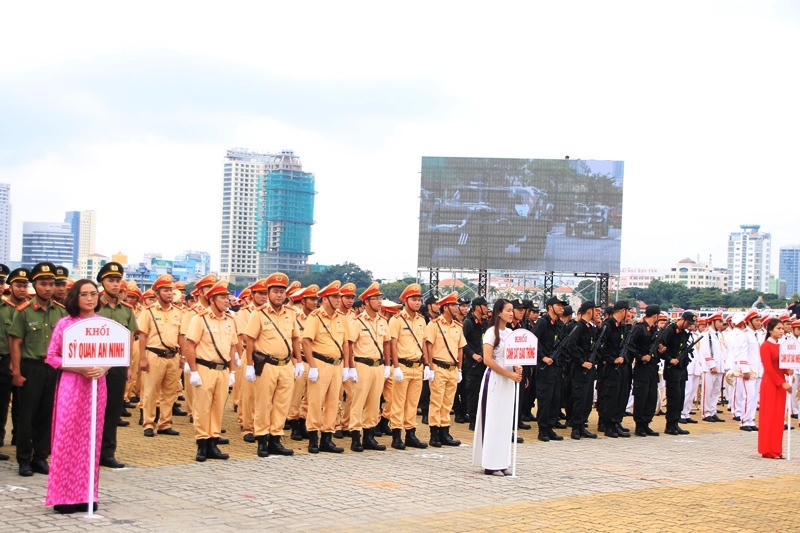 Hình ảnh tại buổi tổng duyệt phần diễn hành phương tiện và biểu dương các lực lượng: