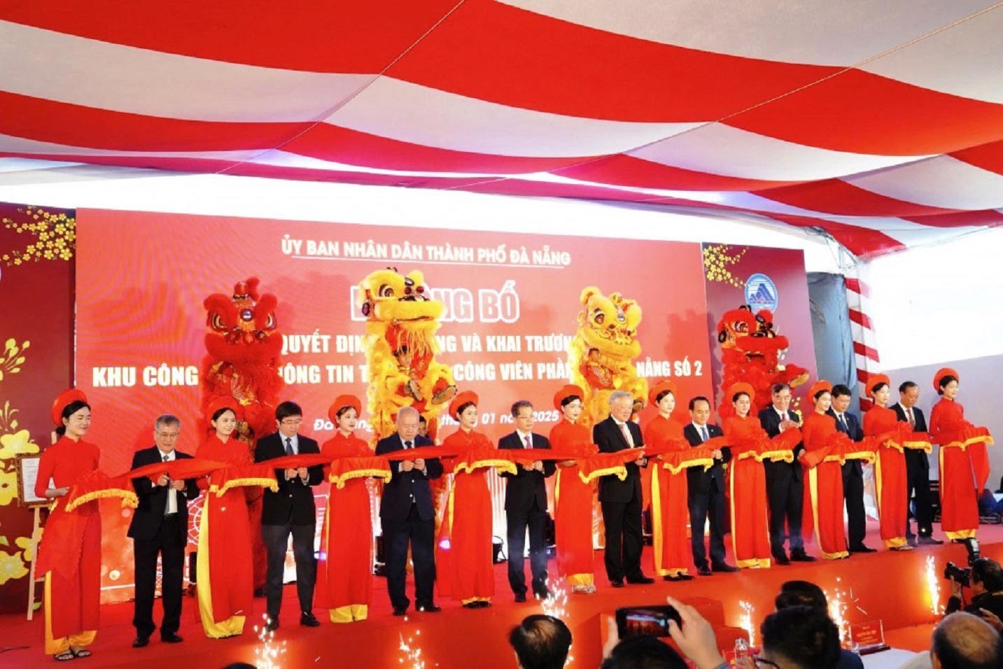 Các đại biểu cắt băng khai trương Khu công nghệ thông tin tập trung Công viên phần mềm Đà Nẵng số 2. |