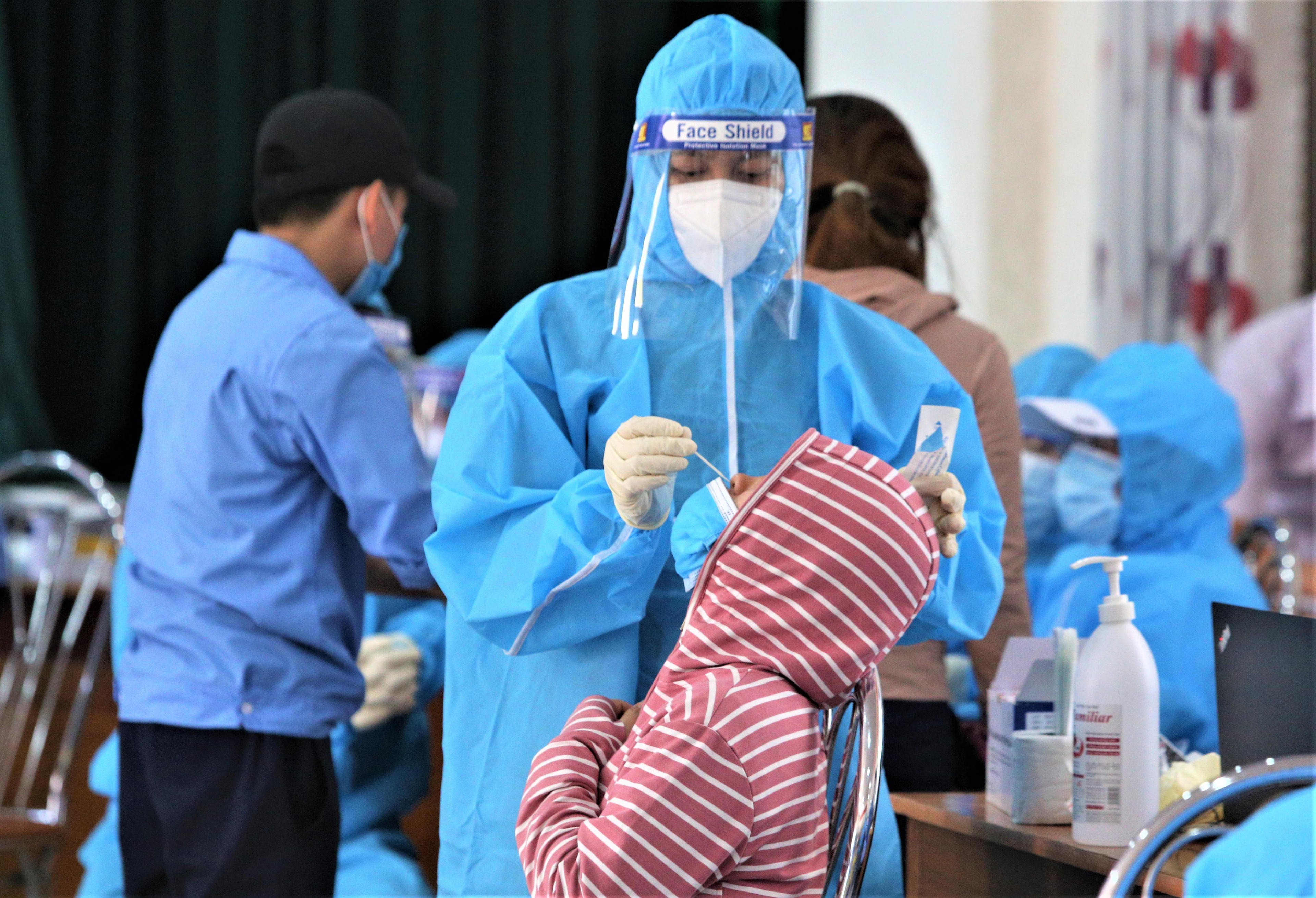 Nhân viên y tế ở Đà Nẵng lấy mẫu xét nghiệm COVID-19 cho người dân. |