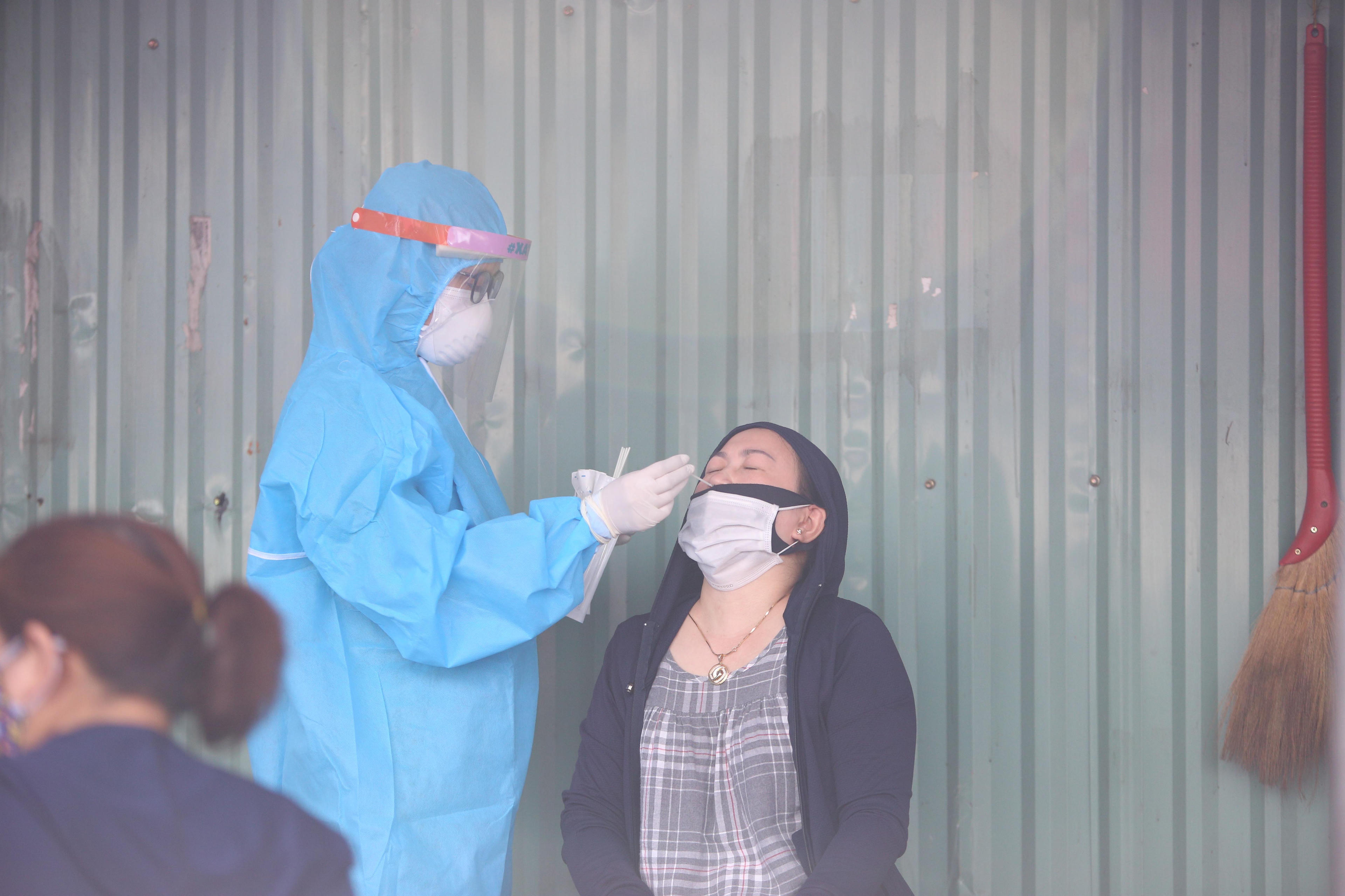Lấy mẫu xét nghiệm COVID-19 cho tiểu thương ở Đà Nẵng. |