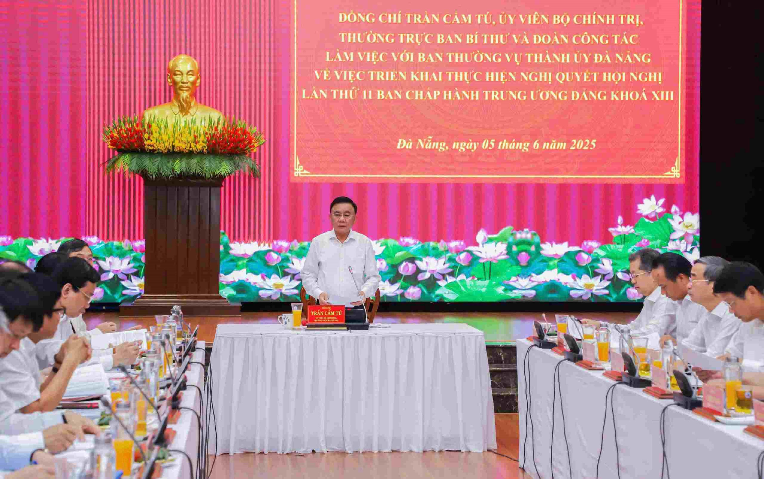 Ngày 5/6, Đoàn công tác do Ủy viên Bộ Chính trị, Thường trực Ban Bí thư Trung ương Đảng Trần Cẩm Tú làm Trưởng đoàn đã có buổi làm việc với Ban Thường vụ Thành ủy Đà Nẵng về triển khai thực hiện nghị quyết Hội nghị Trung ương thứ 11 Ban chấp hành Trung ương Đảng khóa XIII.