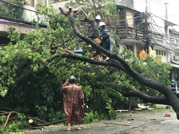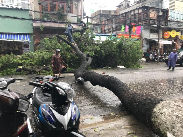 Đặc biệt, đường Hùng Vương (bên hông chợ Hàn), một cây xanh lớn đã bật gốc do mưa gió và ngã đổ sang phía đối diện. Một cụ ông đã bị cây ngã đè bị thương phải đưa đi cấp cứu, chiếc xe máy cũng biến dạng.
