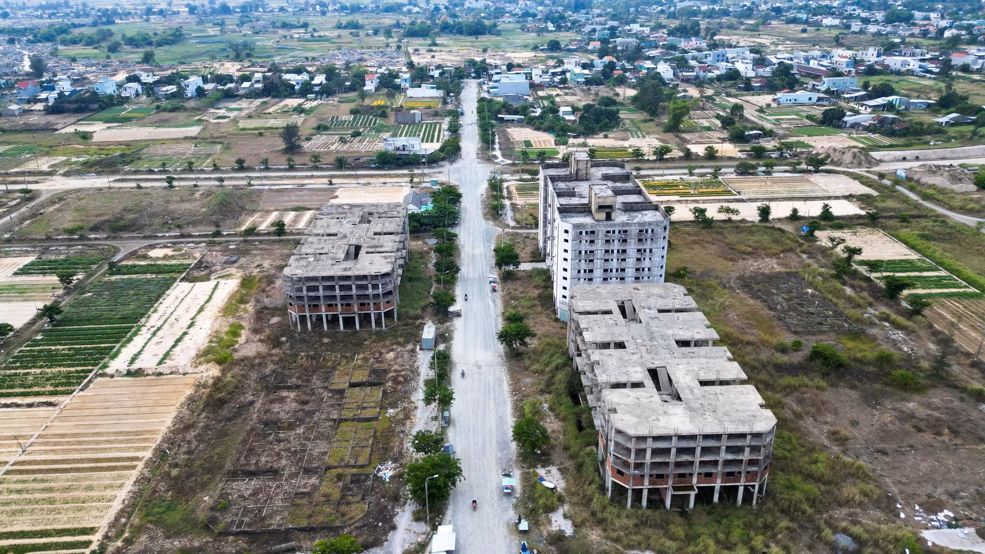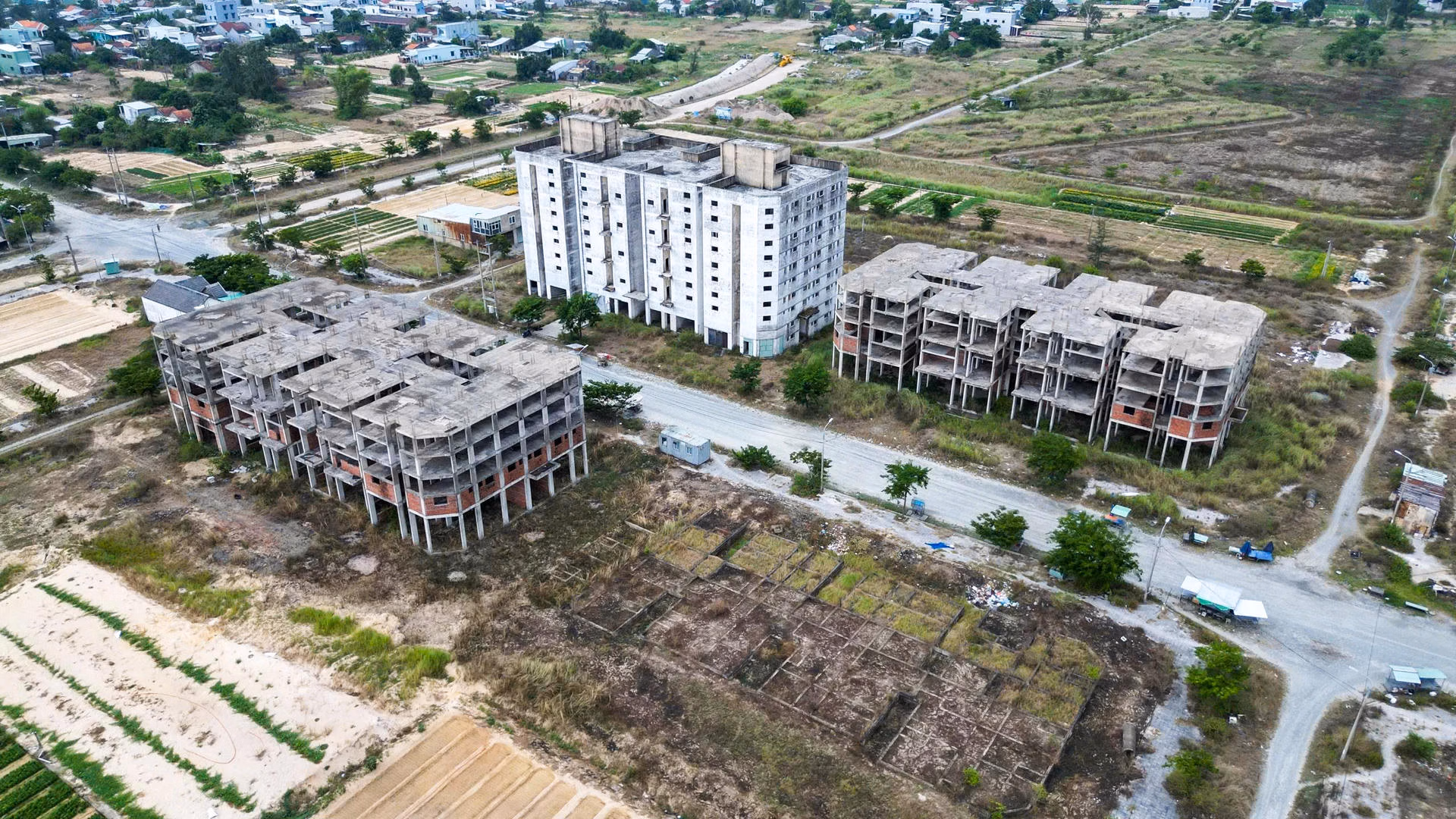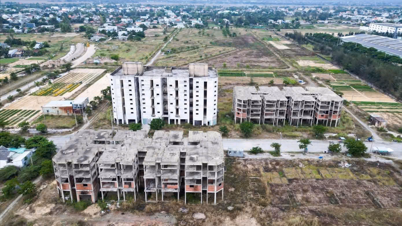 Tại Khu đô thị mới Điện Nam - Điện Ngọc (nay thuộc phường Điện Bàn Đông, TP Đà Nẵng), dự án Khu nhà ở dành cho người thu nhập thấp với tổng vốn đầu tư hơn 700 tỷ đồng hiện chỉ còn là những khối bê tông dang dở, cỏ dại mọc um tùm.