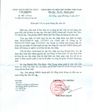 Trước đó, dư luận đang xôn xao về việc Chủ tịch UBND TP Đà Nẵng Huỳnh Đức Thơ sở hữu khối tài sản “khủng” gồm nhiều mảnh đất ở Đà Nẵng, Quảng Nam và góp vốn ở nhiều cơ sở sản xuất kinh doanh.