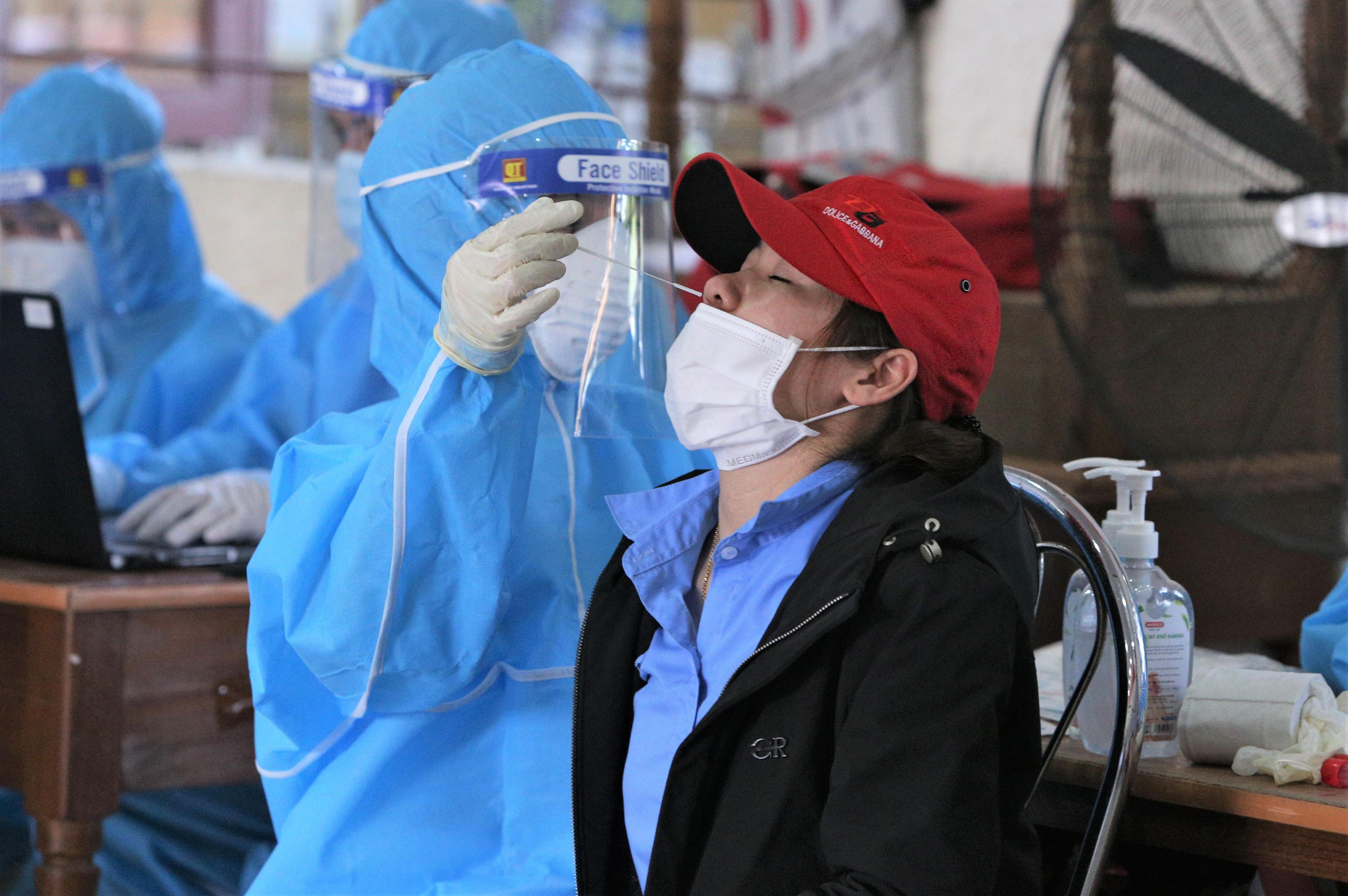 Lấy mẫu xét nghiệm COVID-19 cho công nhân của Công ty Việt Hoa. |