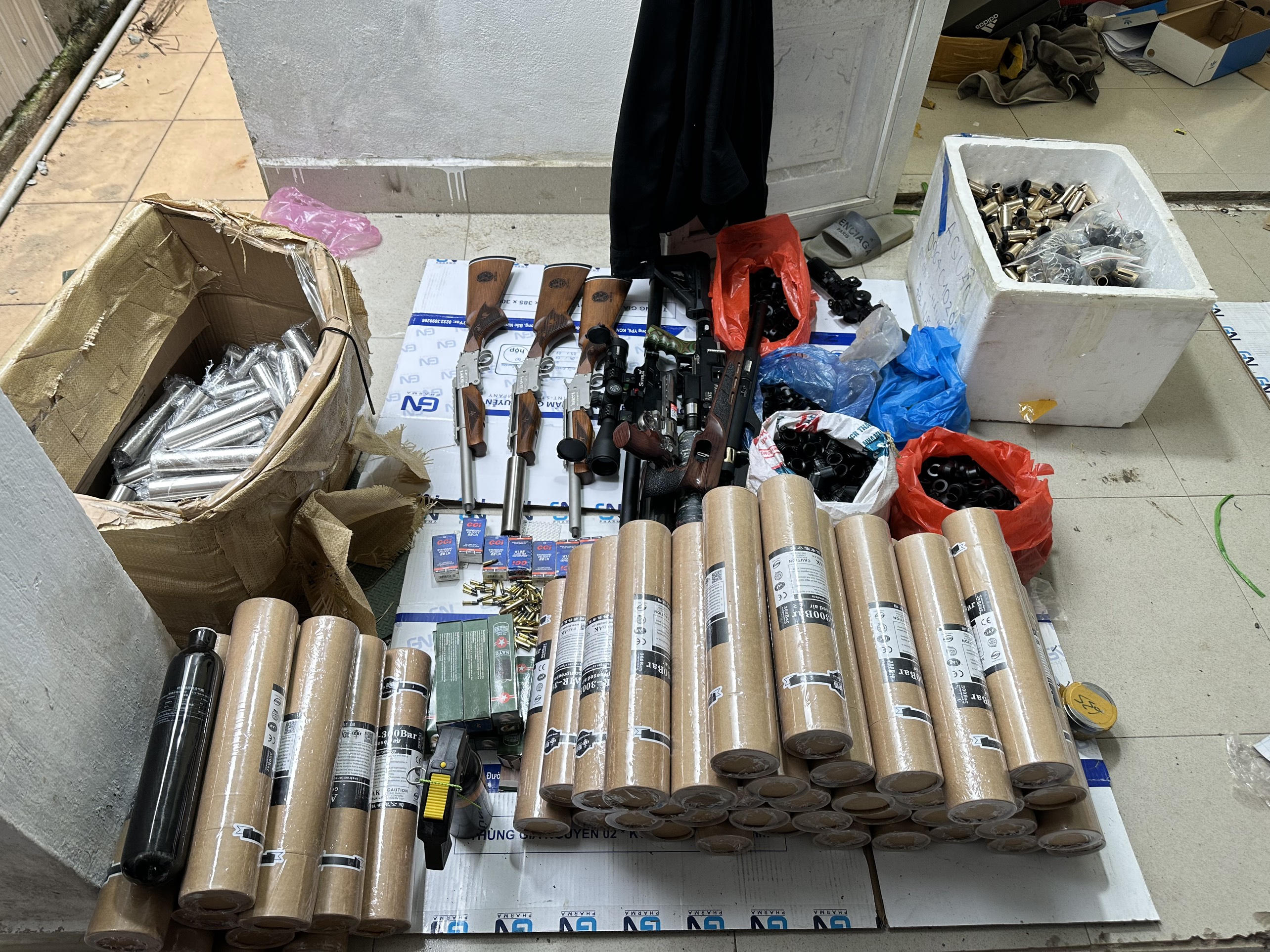 Tại cơ quan điều tra, bước đầu 2 đối tượng này khai nhận, đã thuê căn nhà trên làm kho cất giữ súng, linh kiện, phụ kiện của súng nhằm bán lại cho khách hàng trên cả nước để thu lợi bất chính.