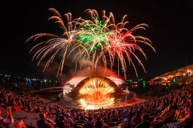 Trải nghiệm “đinh” tại Thị trấn Hoàng hôn là các show diễn nghệ thuật kết hợp pháo hoa. |