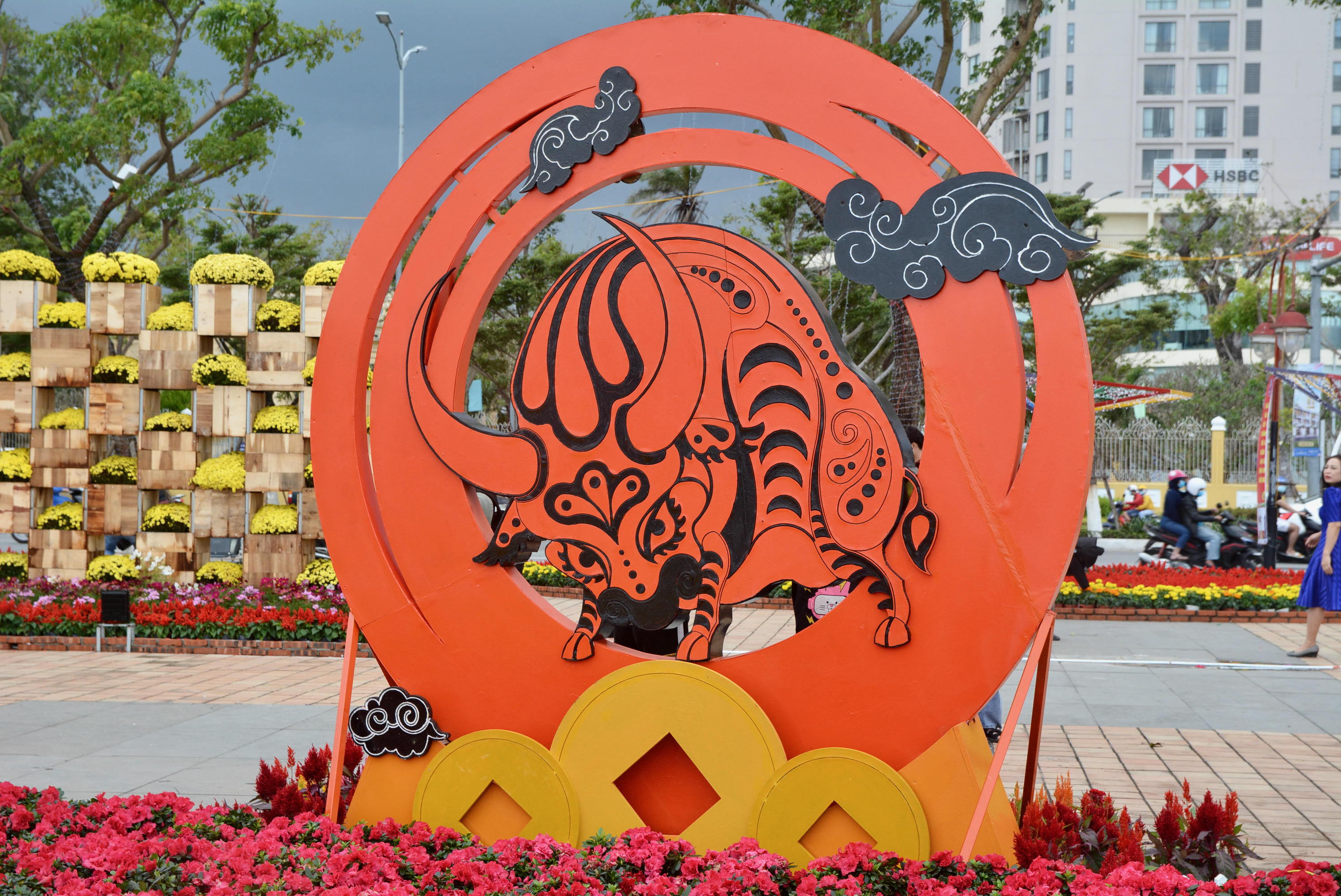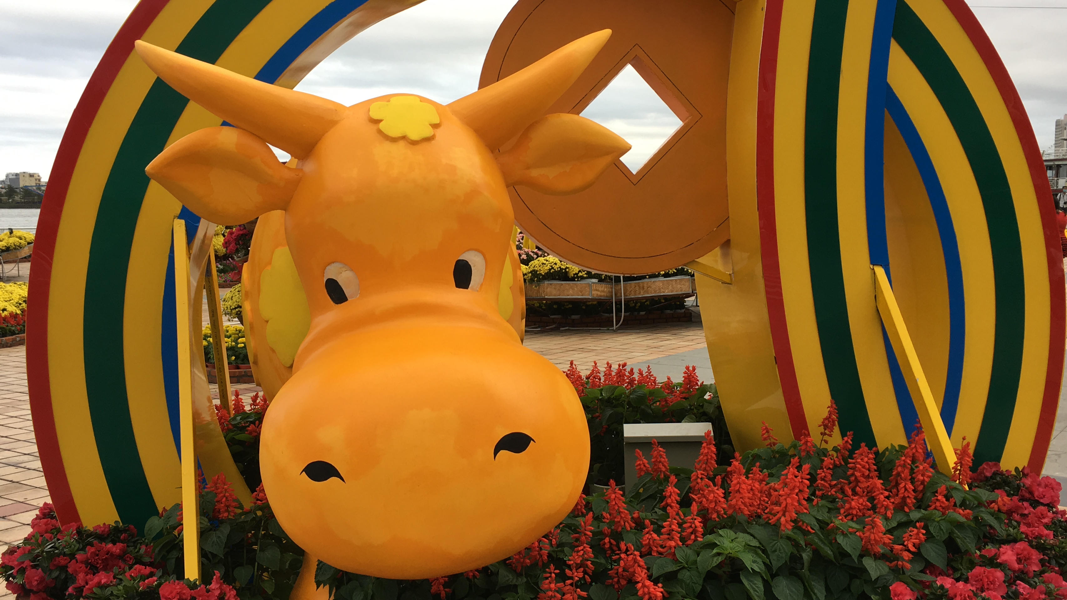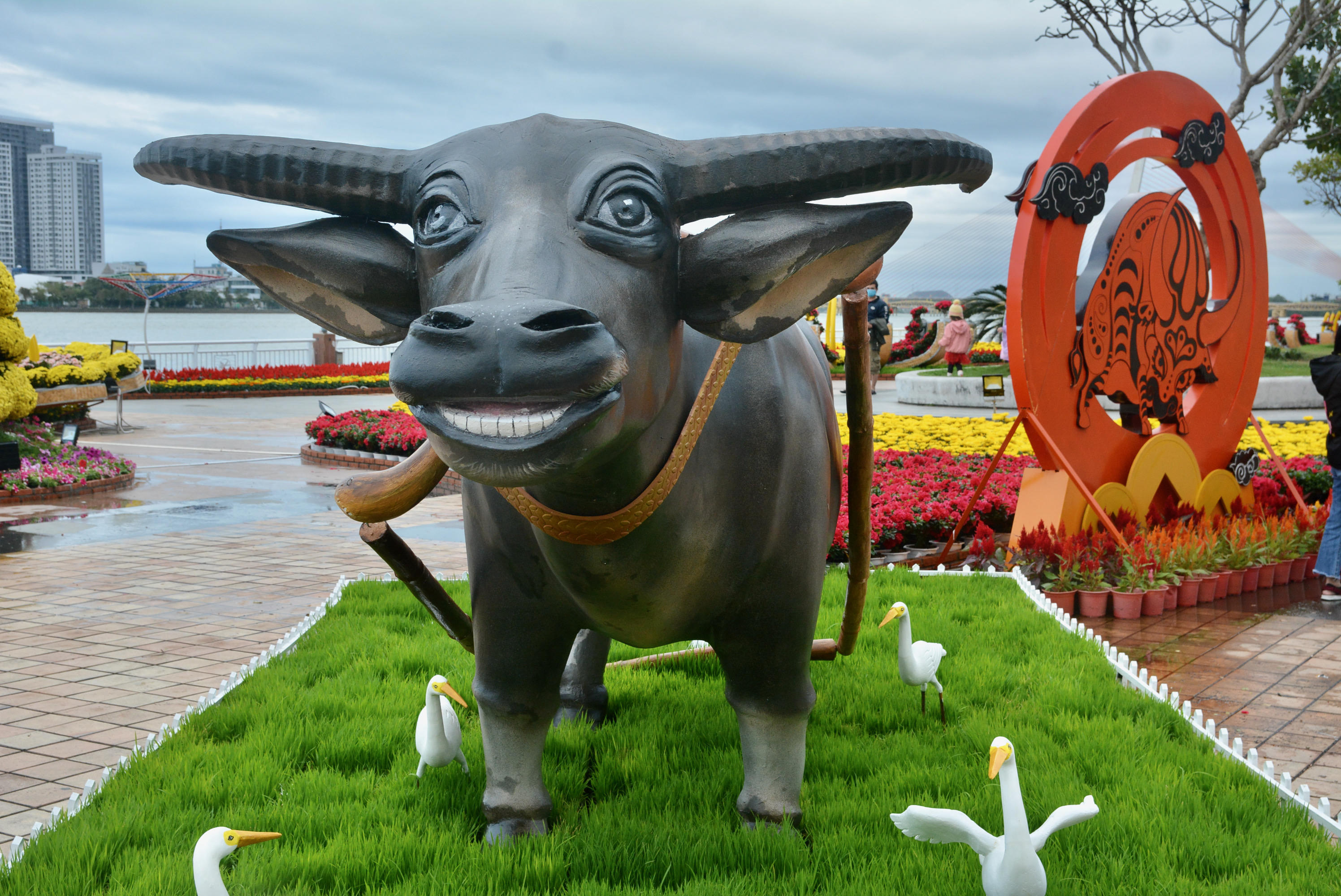 Đà Nẵng: Rực rỡ đường hoa và ngộ nghĩnh linh vật trâu trang trí