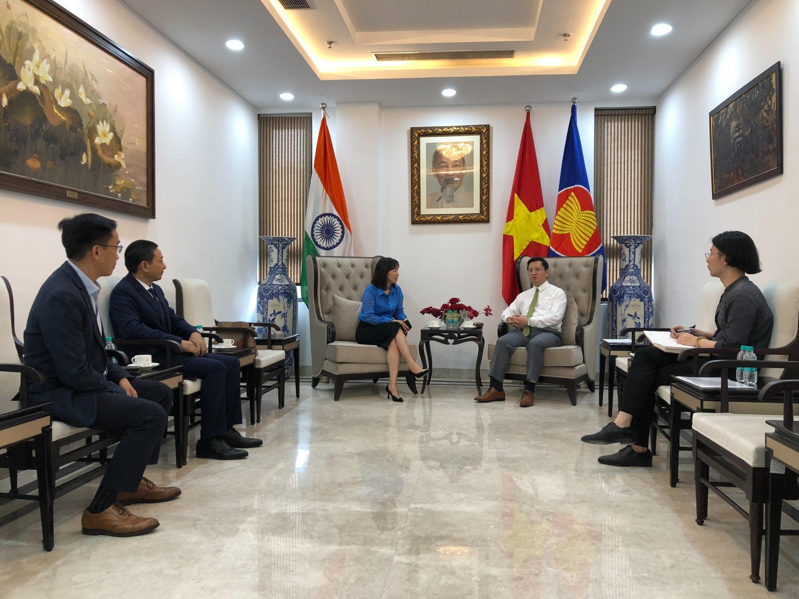 Tham gia các buổi làm việc có đại diện Đại sứ quán Việt Nam tại Ấn Độ, đại diện Công ty Cổ phần Đầu tư và Khai thác Nhà ga Quốc tế - Sân bay Quốc tế Đà Nẵng và đại diện Hãng hàng không IndiGo tại Việt Nam.