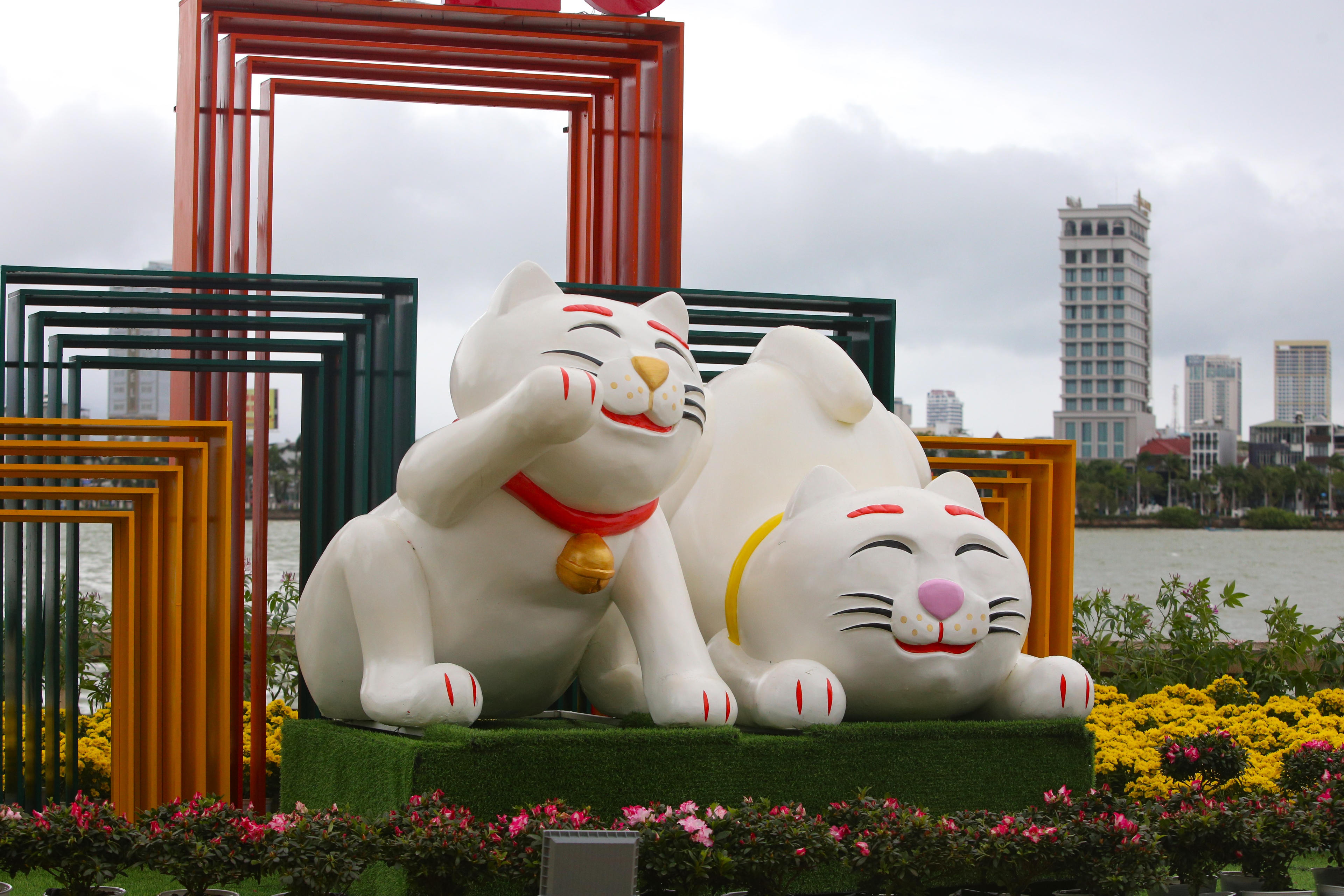 Tiểu cảnh và dàn linh vật mèo trước bảo tàng Đà Nẵng trên đường Bạch Đằng sẽ được tặng lại cho Trường mầm non Hòa Phong 2. |