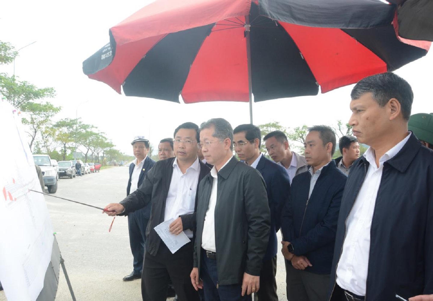 Bí thư Thành ủy Đà Nẵng Nguyễn Văn Quảng nghe báo cáo tiến độ dự án cao tốc Hòa Liên - Túy Loan. |
